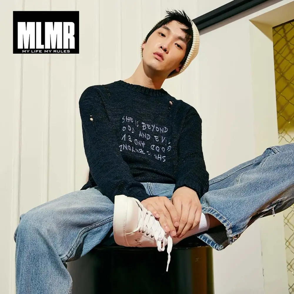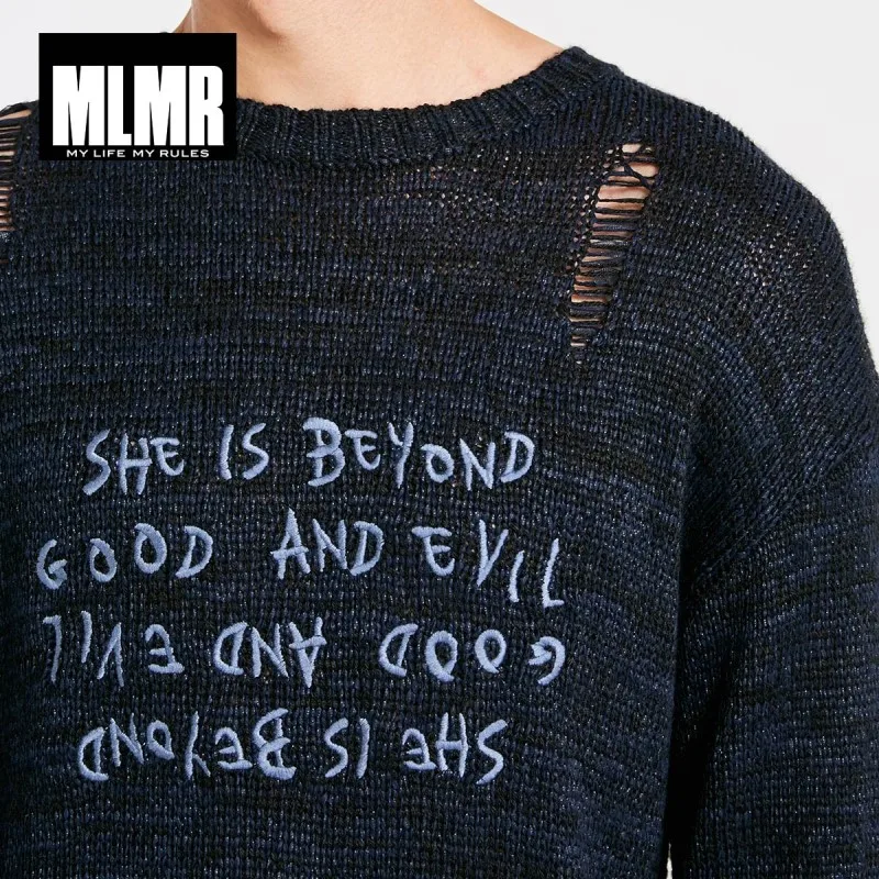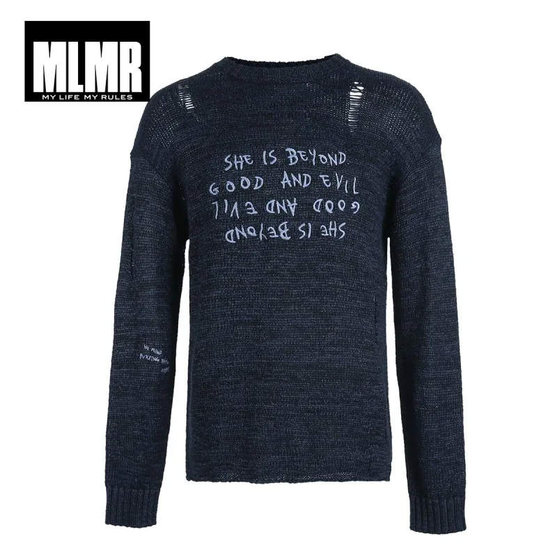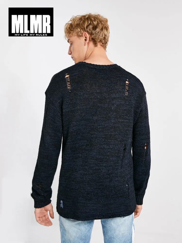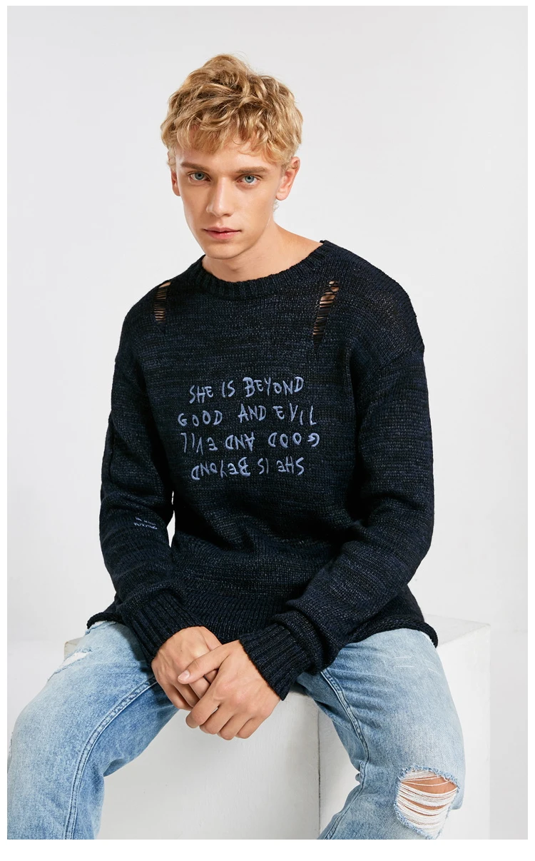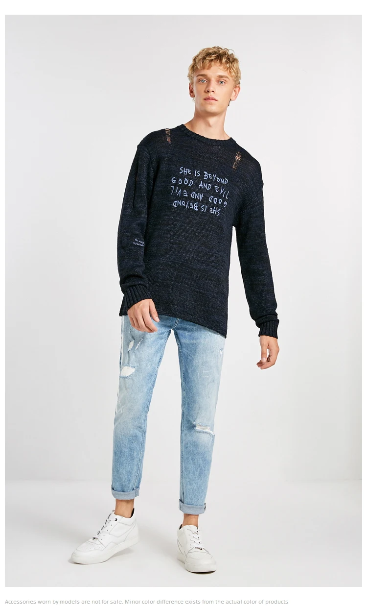 Мужской шерстяной свитер JackJones MLMR, Трикотажный Хлопковый пуловер с рисунком и рваным принтом, 218324551