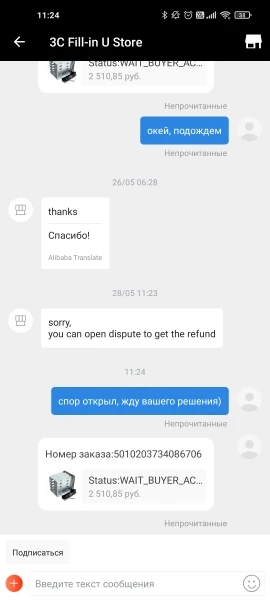 Товар закончился у продавца. Сразу предложил возврат денег, т.к. новый завоз будет не скоро. Возврат денег сделали сразу. Честный продавец. Рекомендую.