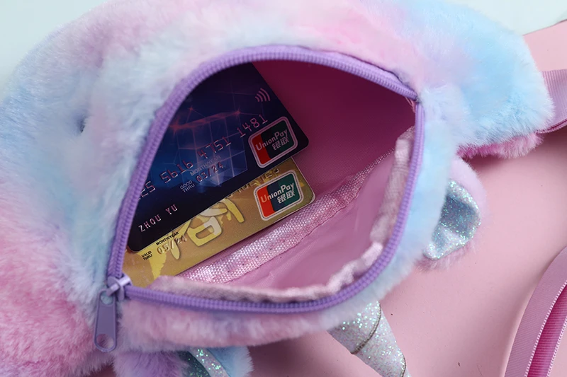 Детская забавная сумка с милым единорогом, поясная сумка для девочек, плюшевые игрушки, нагрудной мешок градиентного цвета, мультяшный кошелек для мелочи, дорожная нагрудная сумка