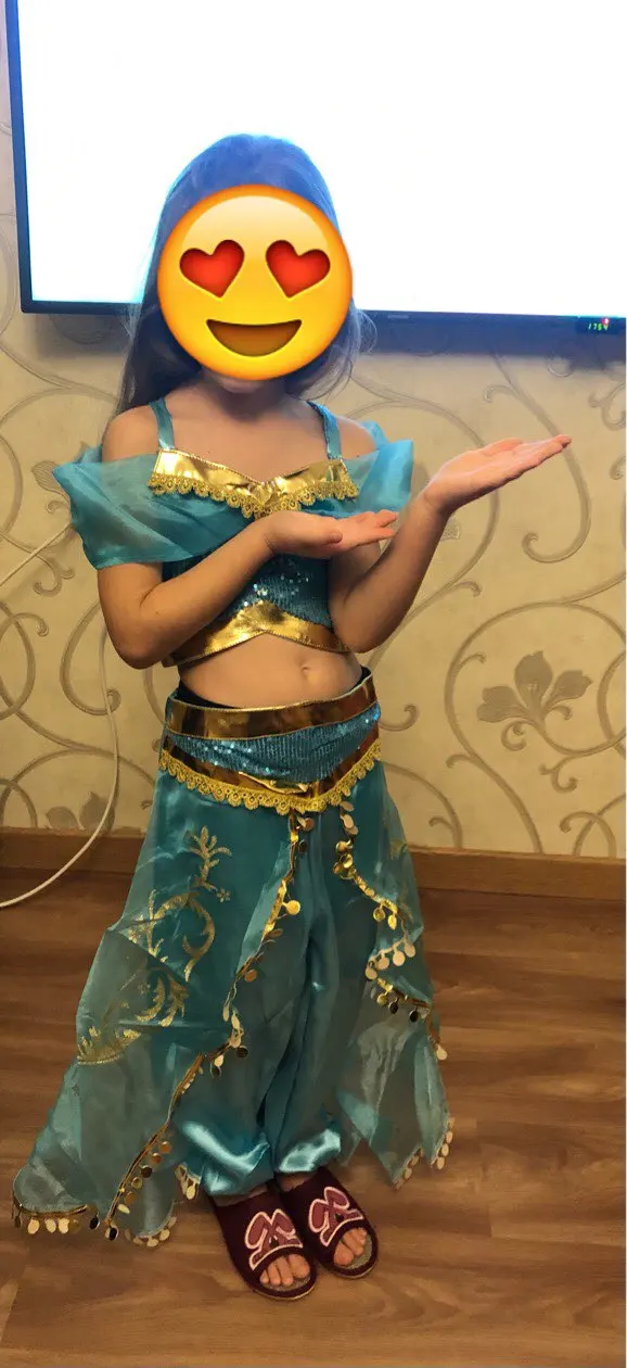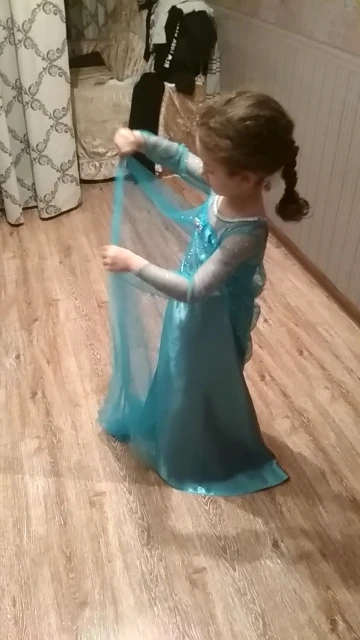 Платье очень красивое. Я в полном восторге! Ткань смотрится в живую гораздо лучше чем на фото.Размер 4 t идеально сел на мою дочь ростом 98 см и весом 13 кг. На мой взгляд таблица размеров не много не соответствует. По таблице платье должно было быть с запасом, а оно прямо на сейчас оказалось. Дочь сразу влюбилась в это платье. Купили сразу подьюбник к нему, смотрится очень здорово. Правда подьюбник оказался великоват и торчит из под платья, но это уже другой момент . Доставка всего за 15 дней в Орел. Заказывала ещё другое платье принцессы у другого продавца на день раньше, так его ещё из Китая даже не отправили а это получили уже. Мы очень довольны покупкой. Из минусов кое где торчат нитки, но это не критично. Одазначно рекомендую и платье и продавца. Спасибо большое за оперативность и за товар).