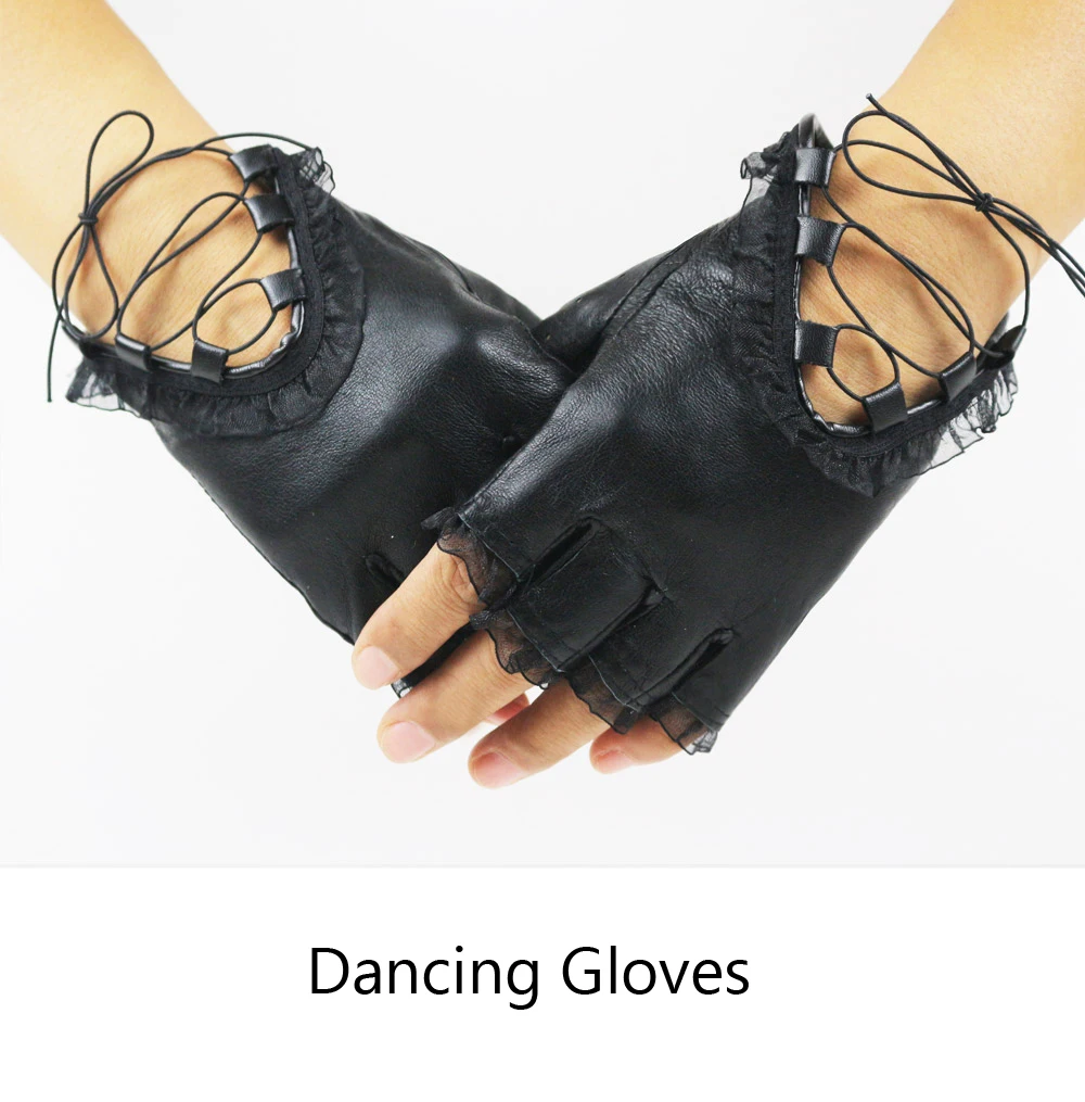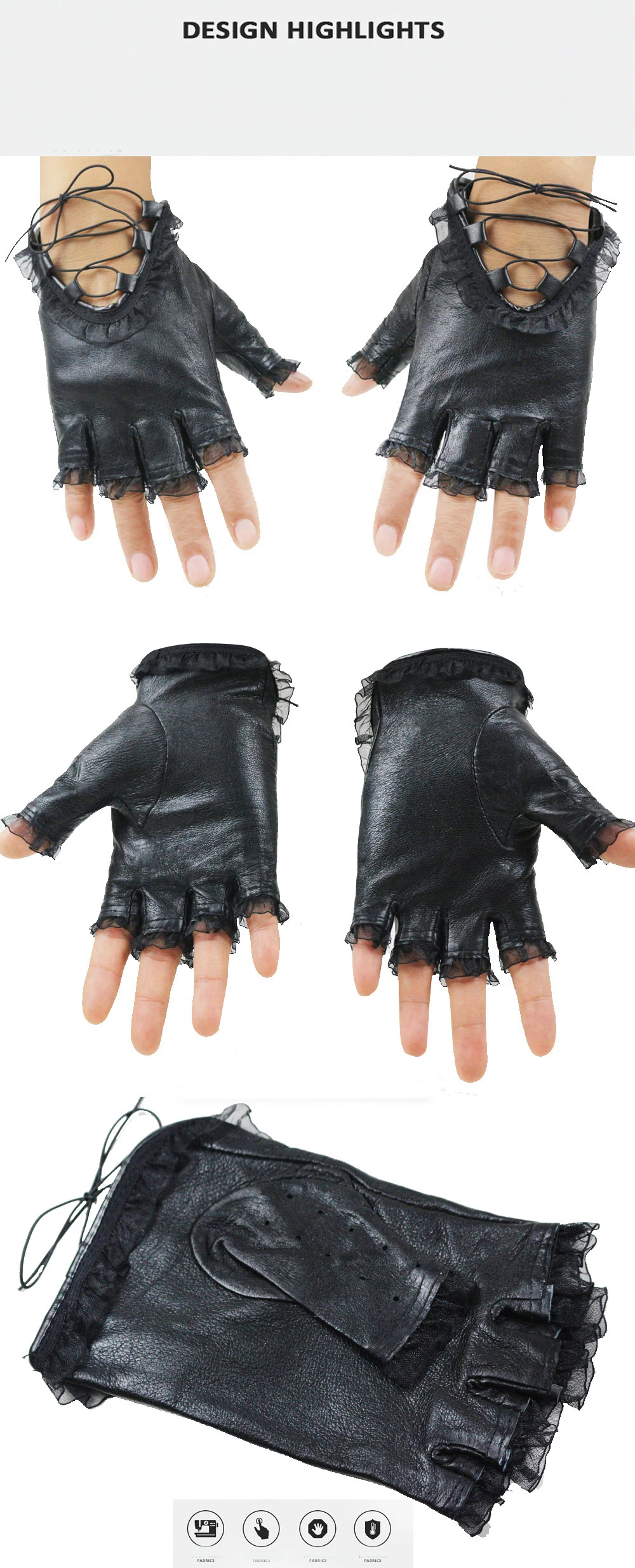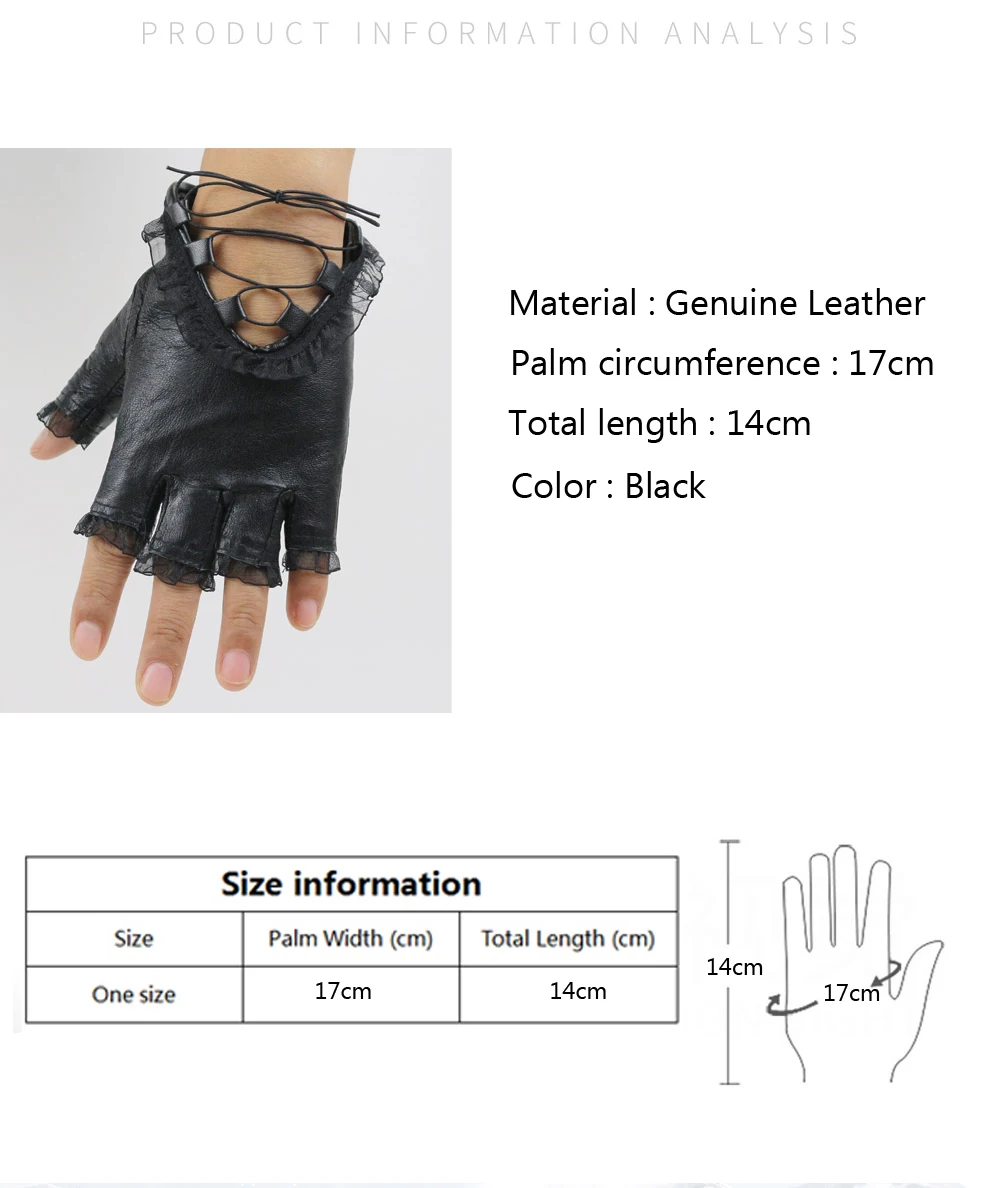 Перчатки женские в стиле панк, кружевные без пальцев, сексуальные митенки из натуральной кожи, для вождения