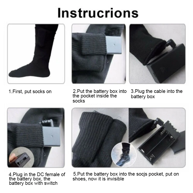 5. Что вы получаете: одна пара теплых носков и две коробки для батарей. (Батарея в комплект не входит)