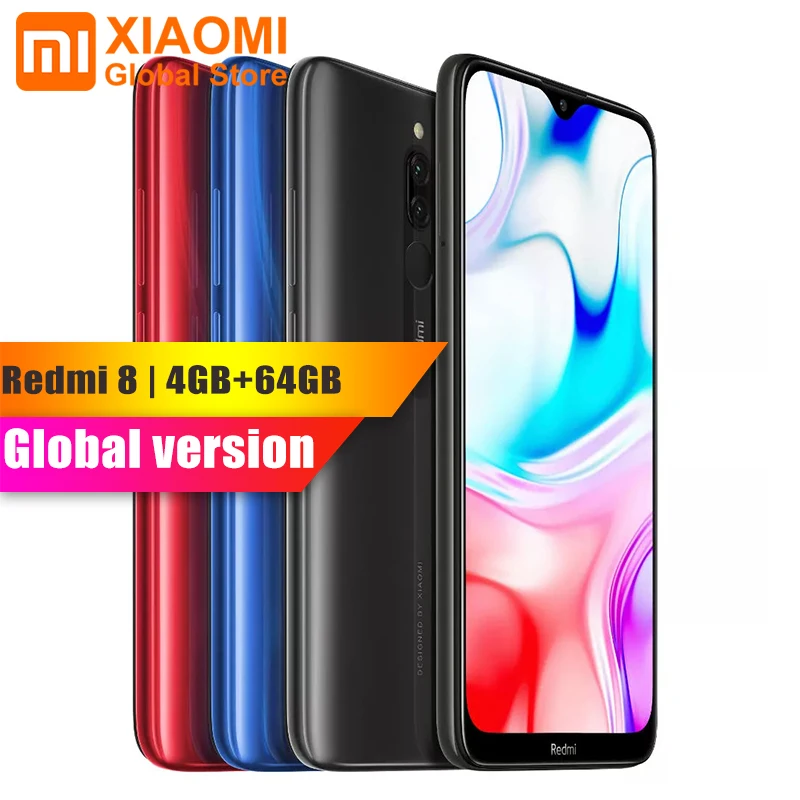 Оригинальная глобальная версия Xiaomi Redmi 8 4 Гб 64 Гб 6,21 "мобильный телефон Snapdragon 439 Octa Core 12MP двойная камера 5000 мАч для смартфонов