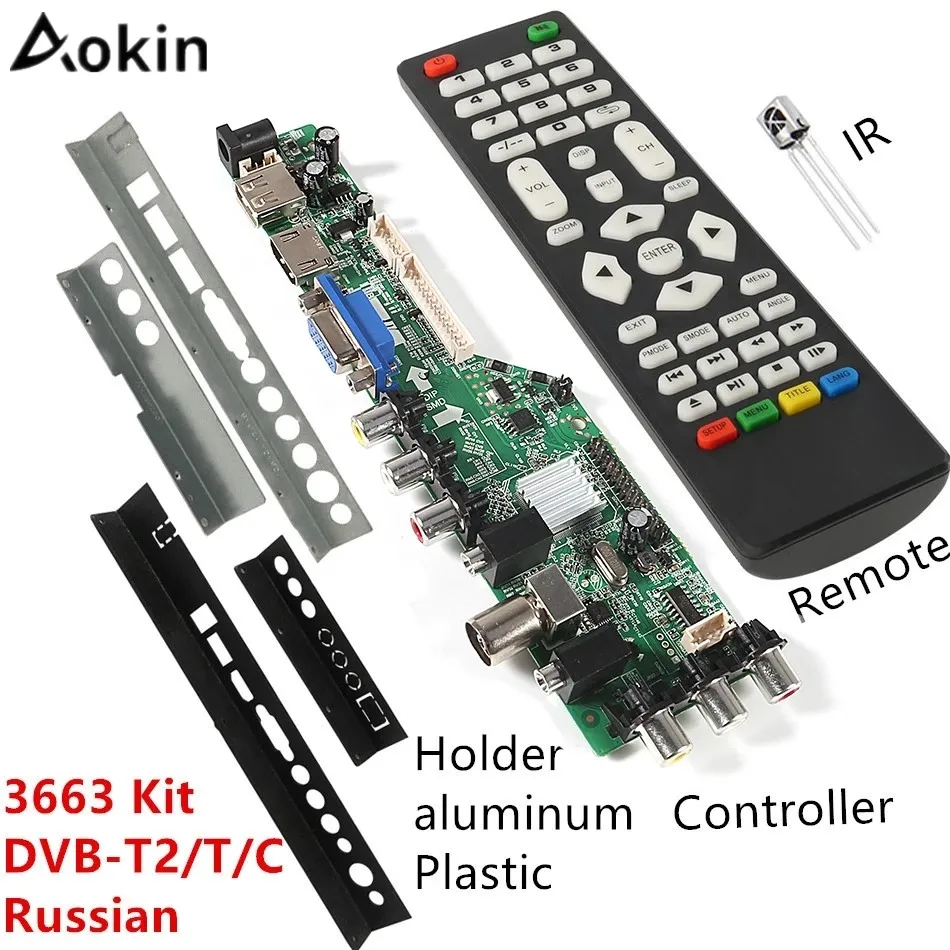 Aokin 3663 Новая цифровая фотография DVB-TT2 универсальная плата драйвера контроллера ЖК-телевизора железная пластиковая перегородка стенд 3463A русский язык