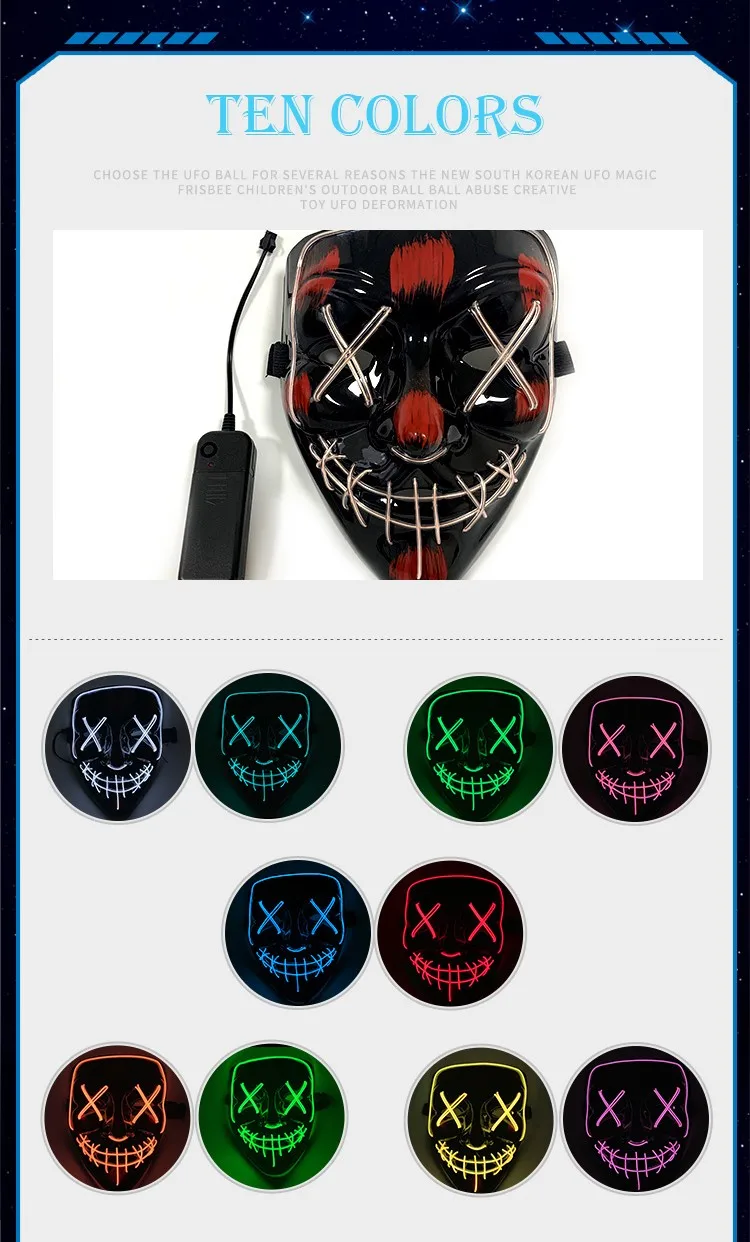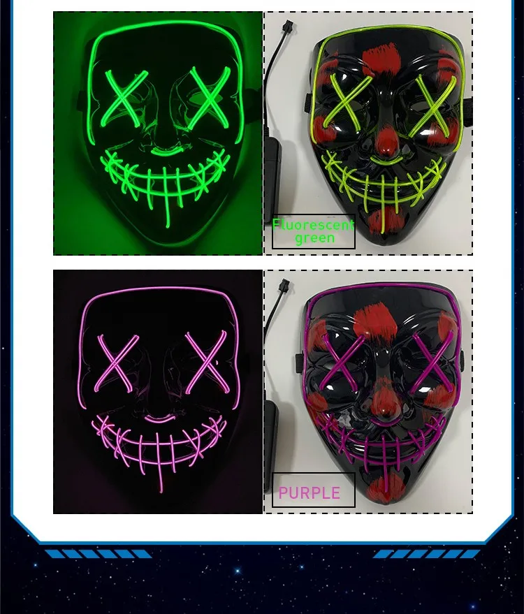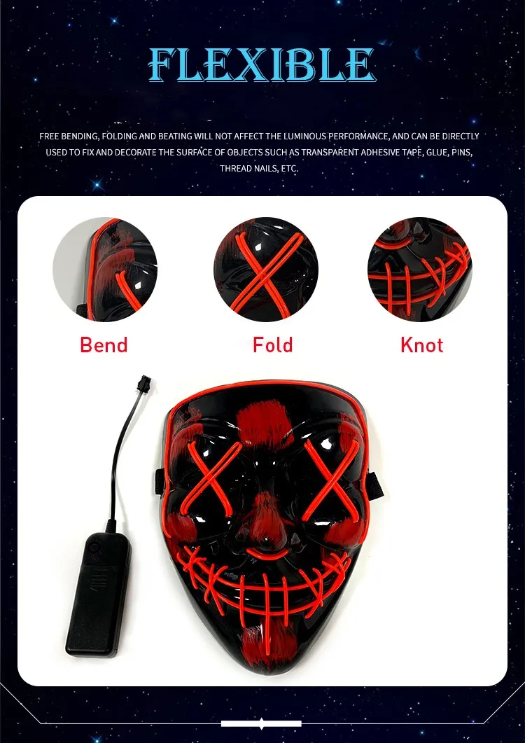 Маска на Хэллоуин EL Wire, 10 цветов, мигающая маска для косплея, с...