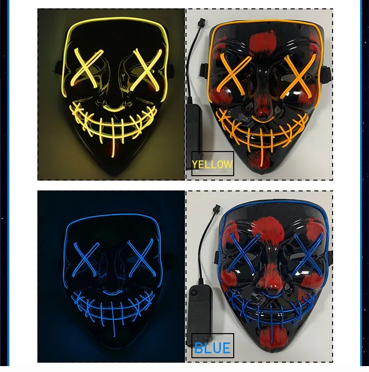 Светодиодная маска с холодсветильник, флуоресцентная страшная маска гримаса с контроллером, дневная вечерние ка для Хэллоуина