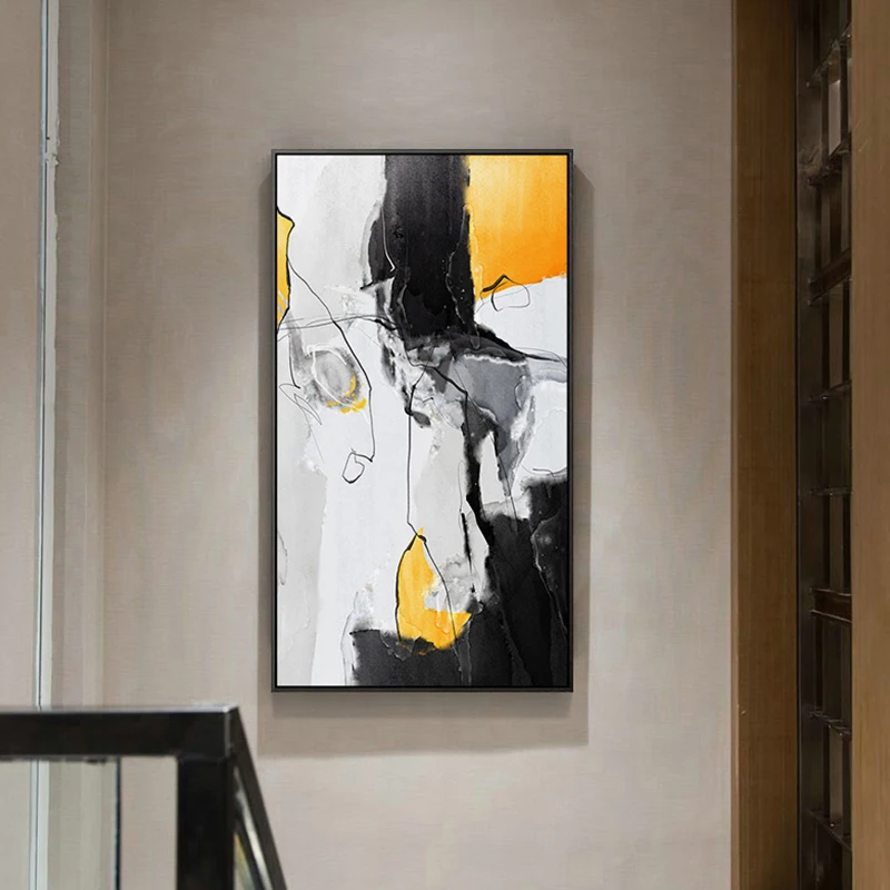 Абстрактная половинчатая Картина на холсте, плакаты и принты желтог...