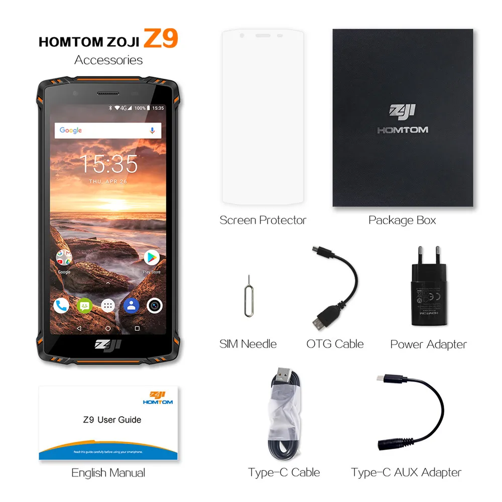 HOMTOM ZOJI Z9 Helio P23 IP68 водонепроницаемый смартфон с восьмиядерным процессором 5,7 дюйма, 6 ГБ ОЗУ 64 Гб ПЗУ, 5500 мАч, полный диапазон, 4G LTE мобильный телефон