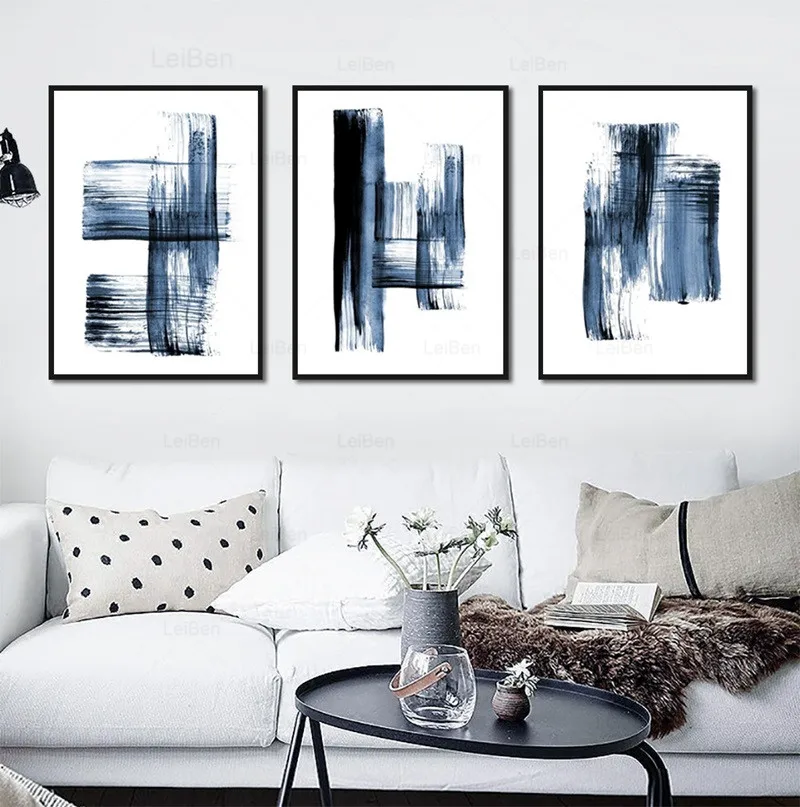Синий Граффити Повседневный простой свежий холст Картина абстрактны...