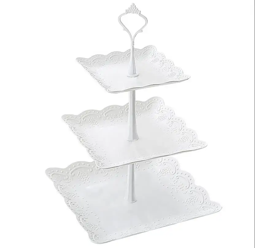 3 яруса кружевных подставка для тортов десертов, выпеченный в гофри...