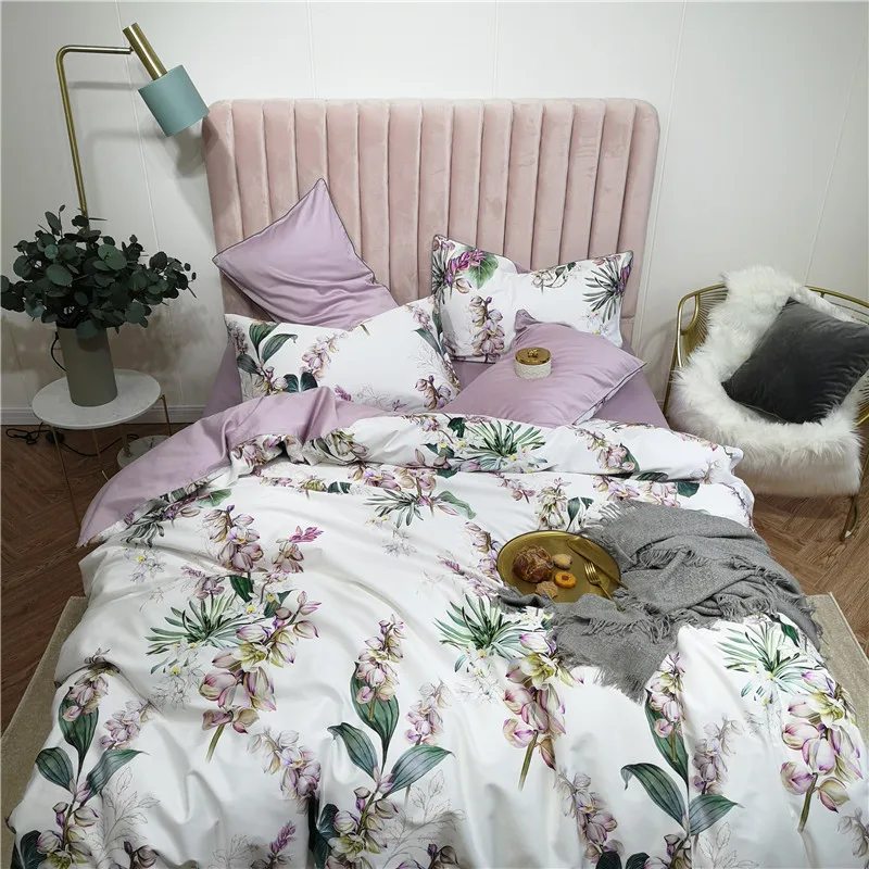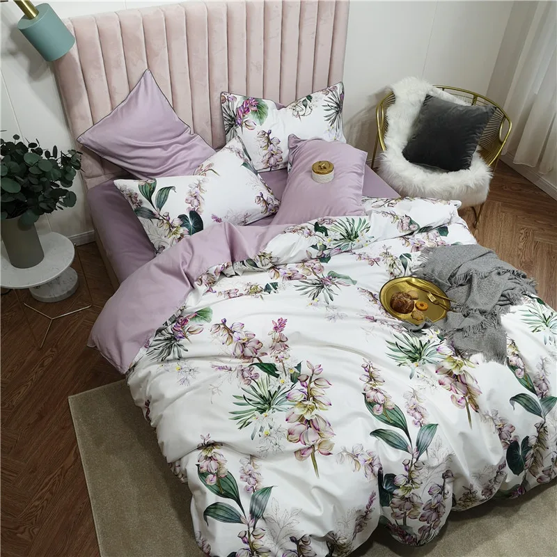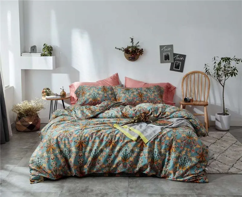 Комплект постельного белья из 100% египетского хлопка, с тропическими листьями и цветами, простыня, пододеяльник, наволочки