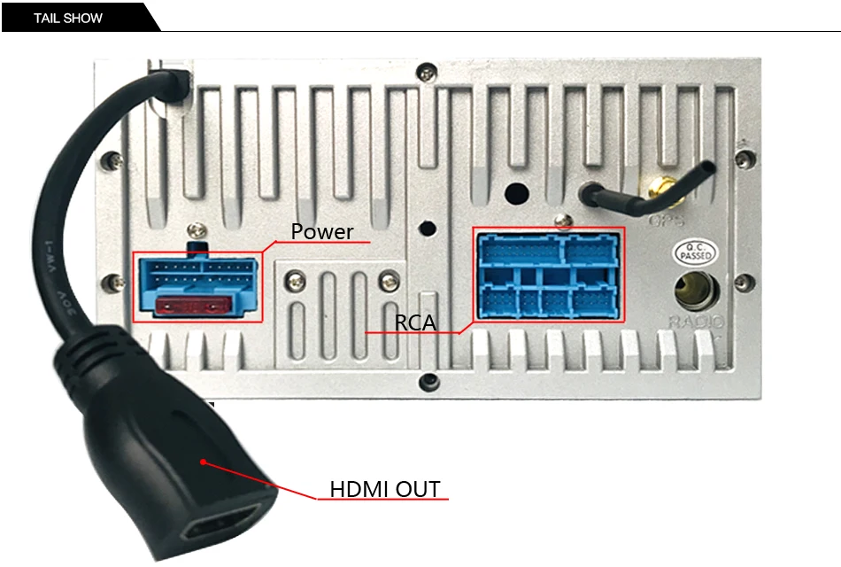 Выходной порт HDMI обеспечивает способ подключения между головным устройством и монитором с поддержкой HDMI или другим устройством. С помощью кабеля HDMI вы можете поделиться видео высокой четкости и высококачественным звуком со всеми пассажирами вашего автомобиля.