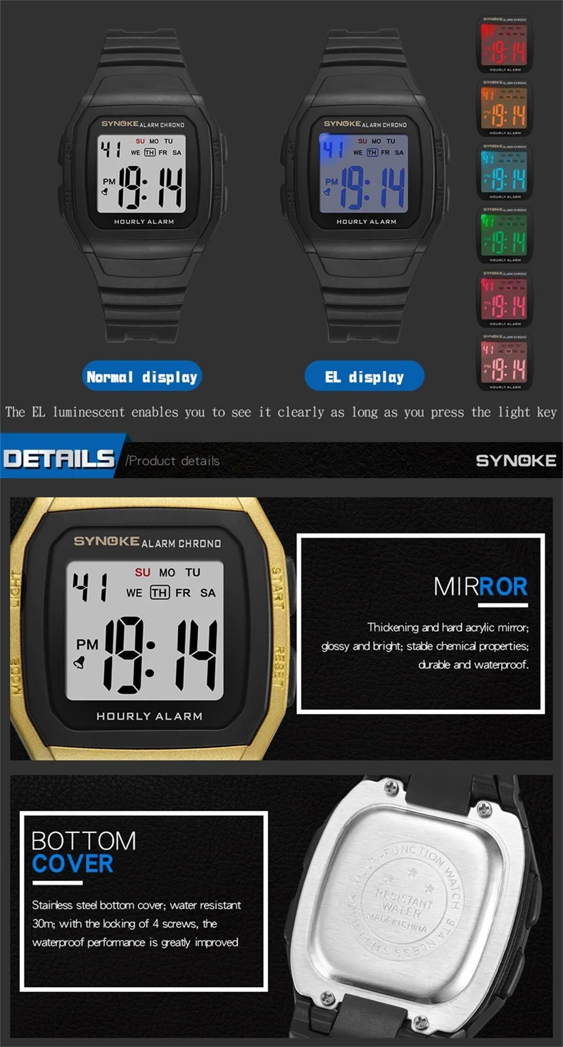Мужские электронные часы с хронографом, на ремешке из ПУ кожи