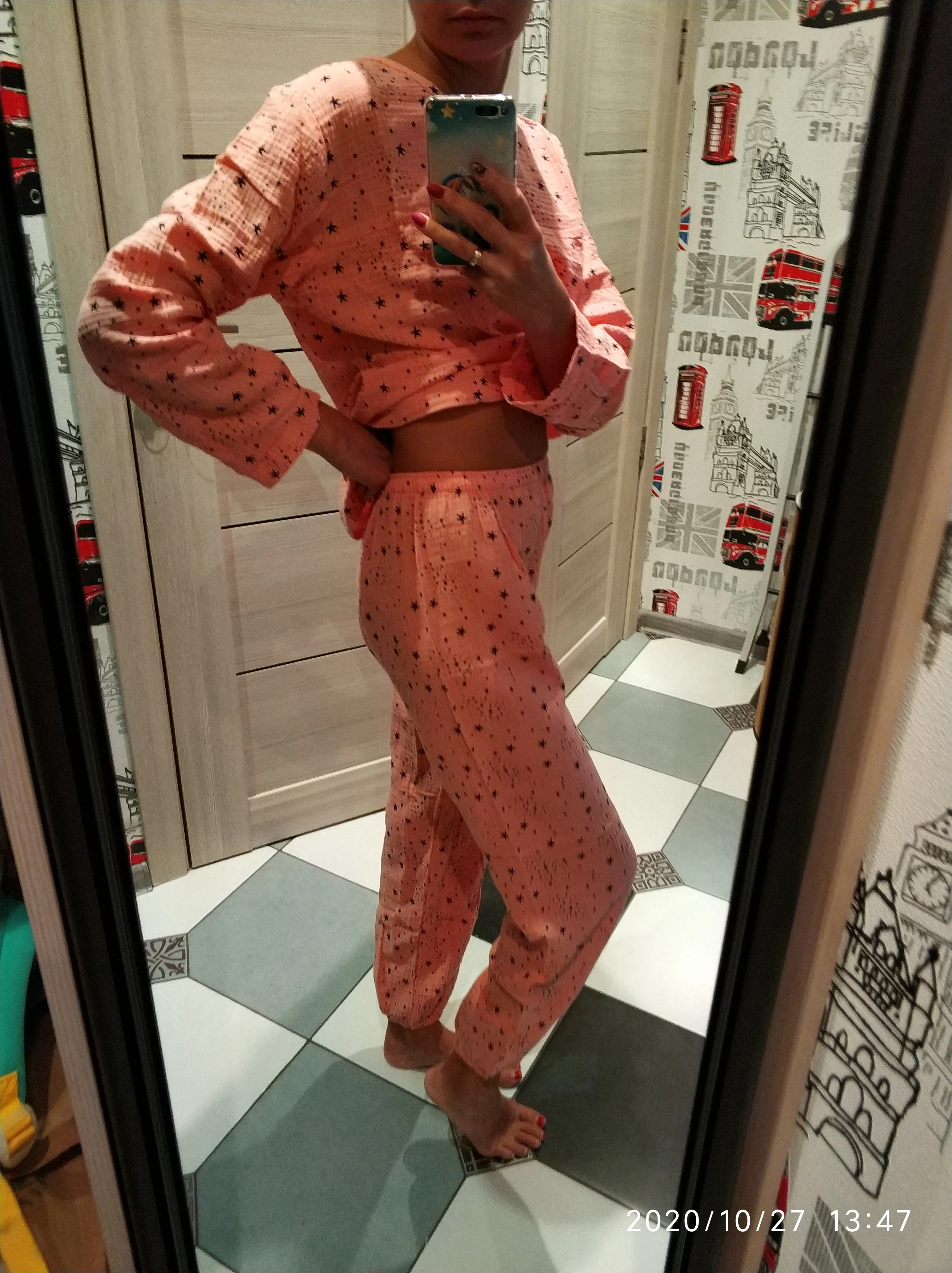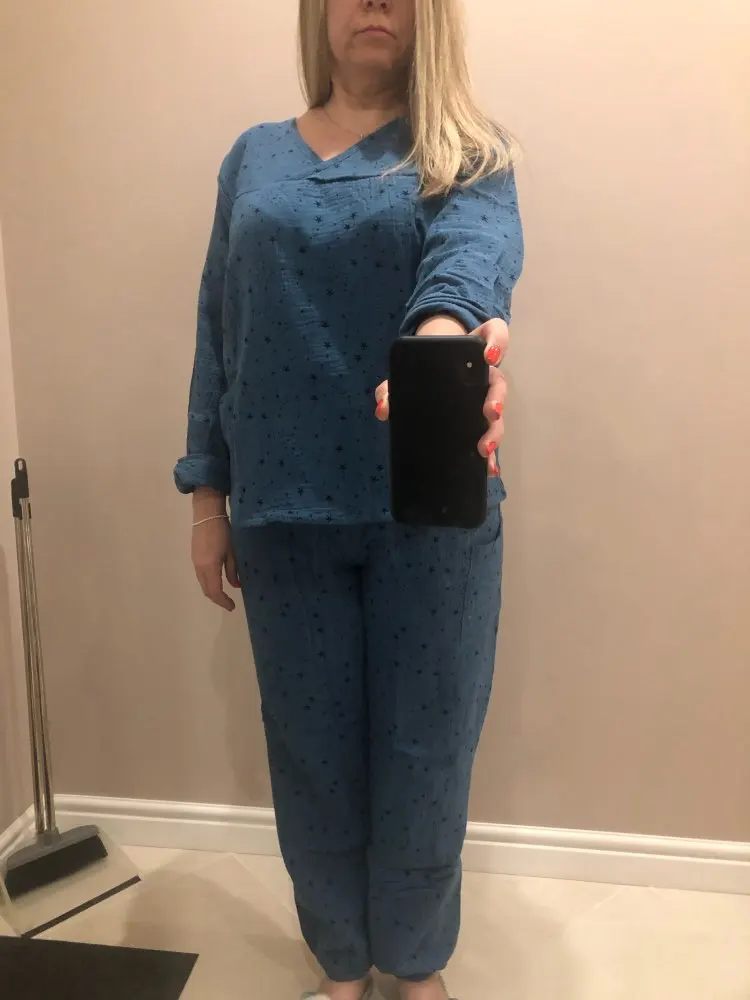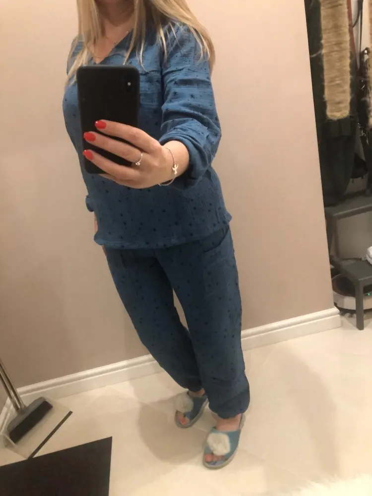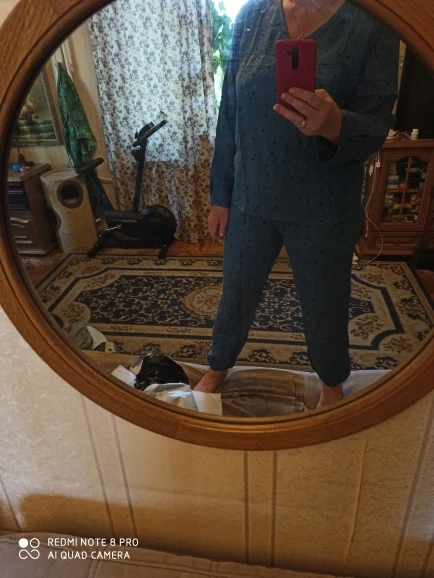 Отличная пижама-домашний костюм! Хлопок наконец то! Брала на росс. 46. Спасибо продавцу!