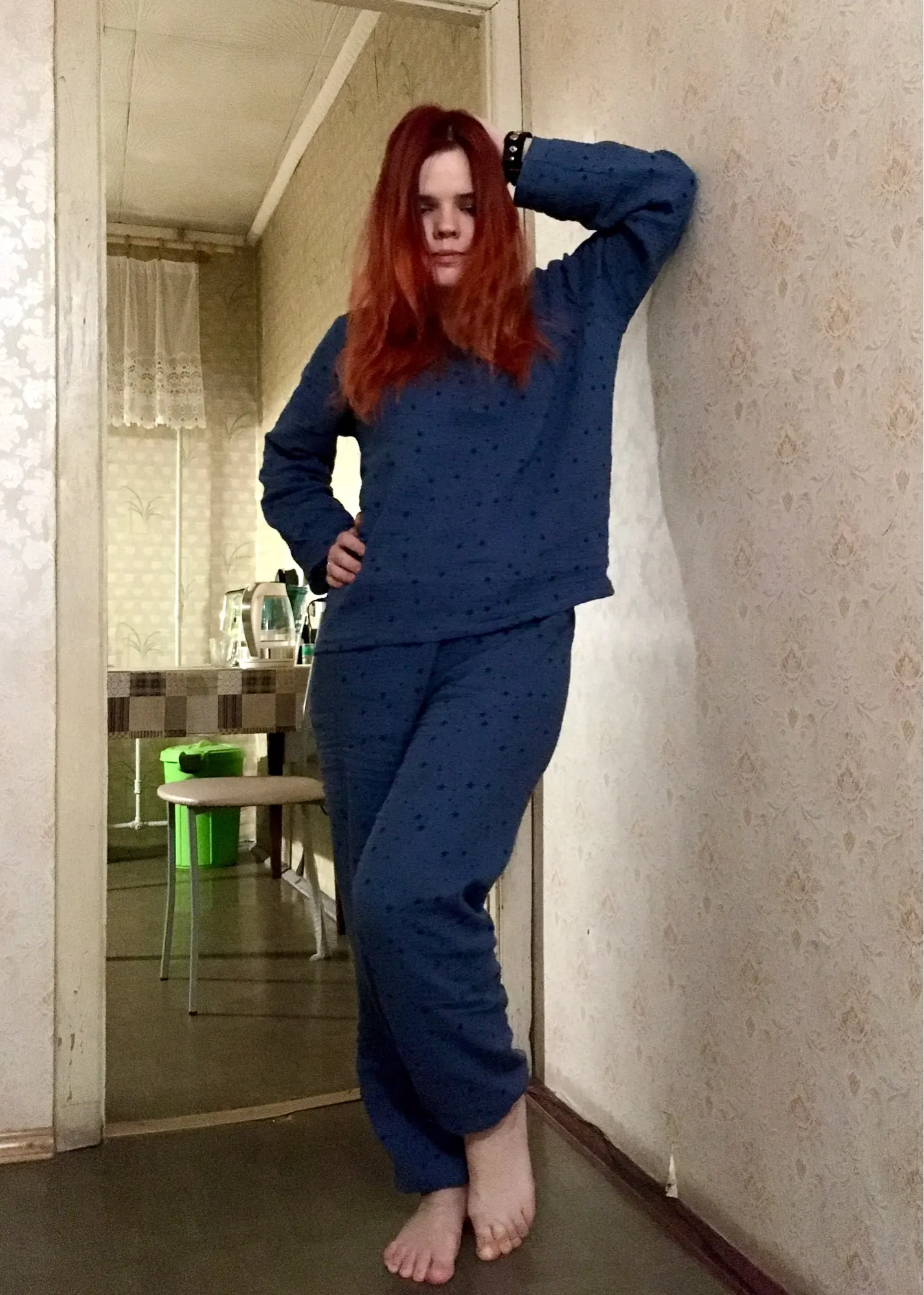 Пижама хорошая. Приятная к телу. Материал хлопок жатый. Рукова длинные мне. Но норм. Я чуть подвернула их. Доставка 3 недели в Свердловскую область.