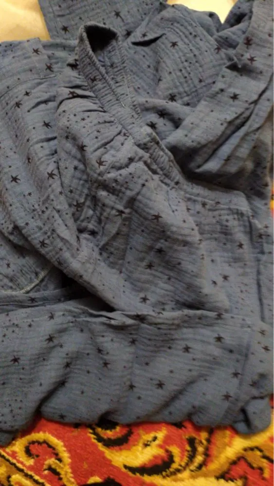 Второй раз заказывая эти пижамы. Двойная газовая ткань из чистого хлопка. Мягкий и удобный. Отличное качество. После ручной стирки в прохладной воде не садится. Они очень быстро сохнут на воздухе. Я так доволен ими, я планирую купить больше в качестве подарка для всех. Это потрясающе, особенно учитывая низкую цену.