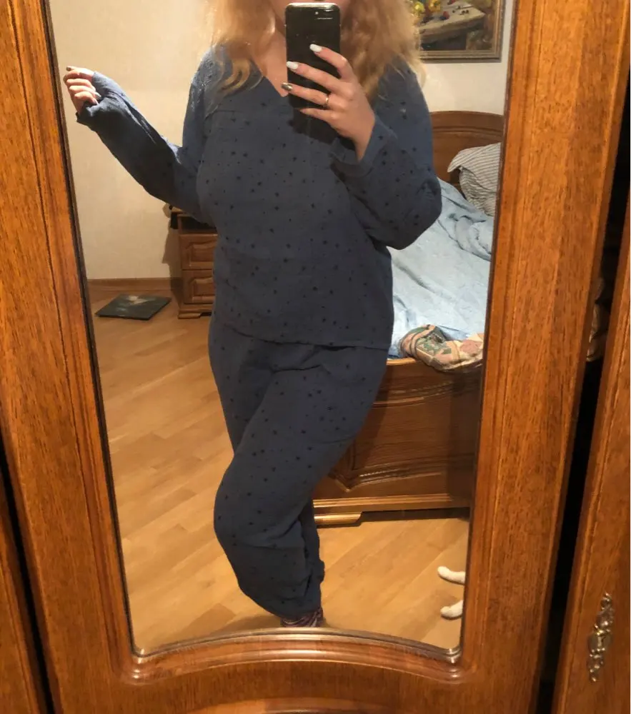 Мне понравилась пижама! Уютная) брала L на свой 44-46. Коротковаты рукова.