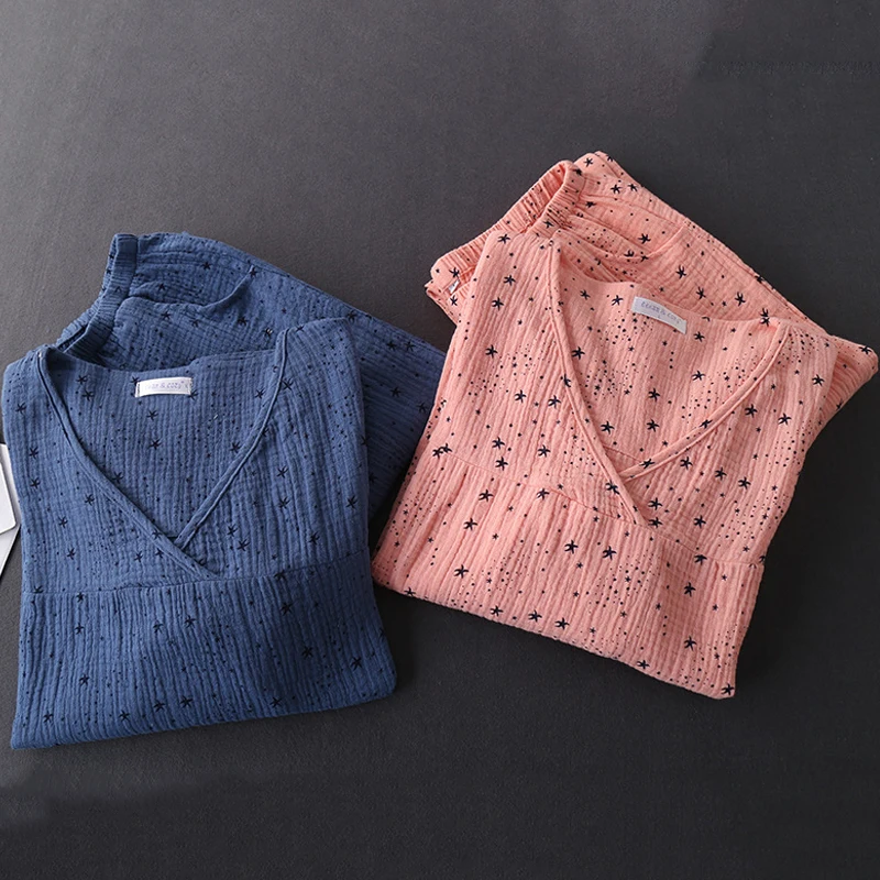Женская хлопчатобумажная моющаяся Пижама для женщин пижама женская пижама домашний костюм одежда для сна домашняя одежда пижама, текстура, креп, марля, с длинным рукавом домашняя одеж брюки, пижама с v-образным вырезом