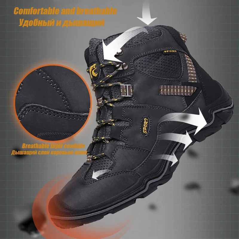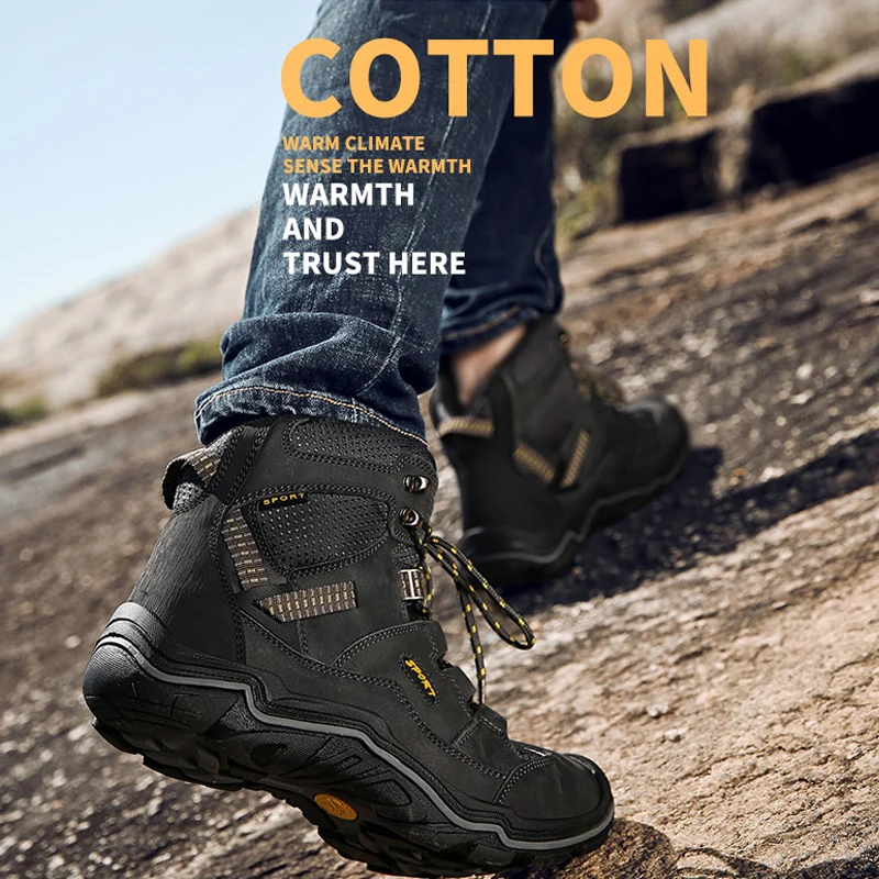 Мужские походные ботинки YIGER, натуральная кожа, Нескользящие, теплые, Повседневные высокие сапоги, зимняя Уличная обувь, большие размеры, 0410