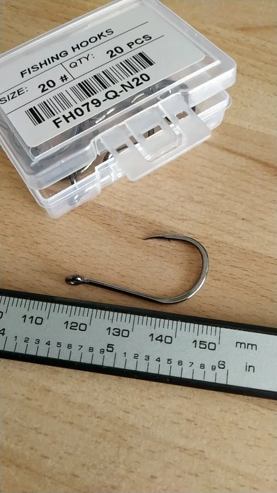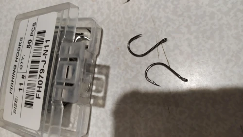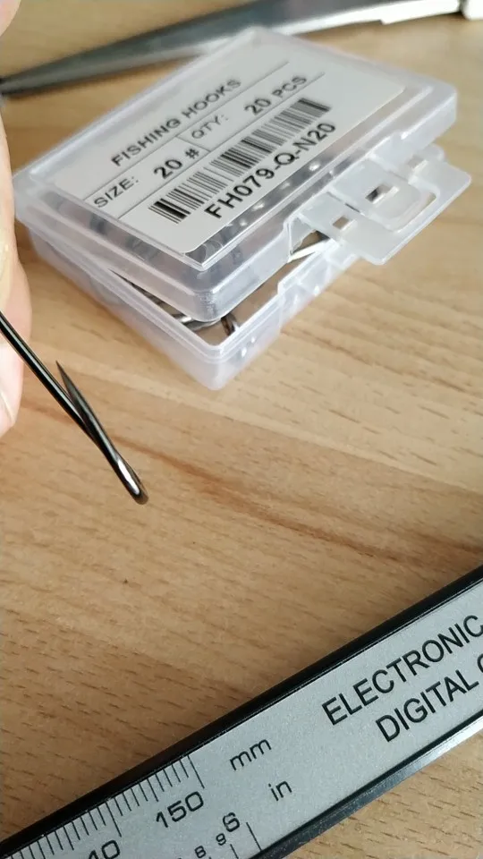 Швидка доставка новою поштою. Гачки гострі, відповідають розмірам що в описі. Товстіші ніж хотілося би. На першому фото справа гачок 0 ,55мм товщини, використовую для ловлі плотви, куплені на Алі раніше. Ці на ляща. Рекомендую
