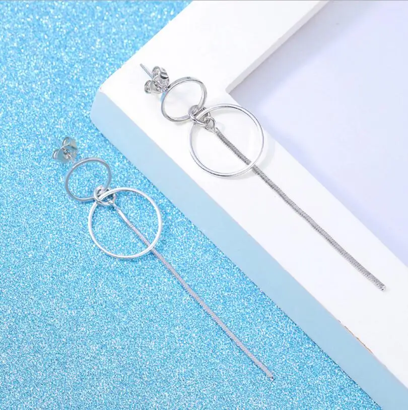 Серебряный цвет двойные круглые длинные серьги-кисточки ювелирные изделия для ушей для женщин модная вечевечерние