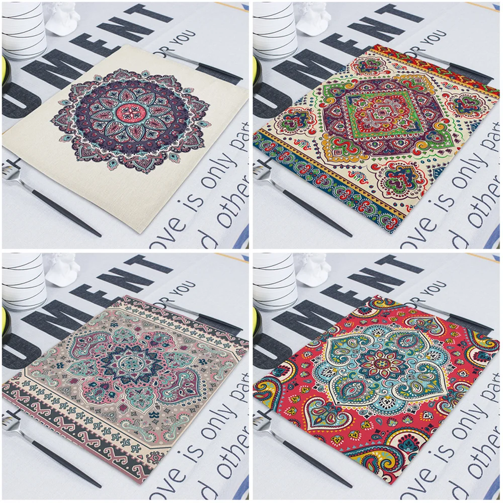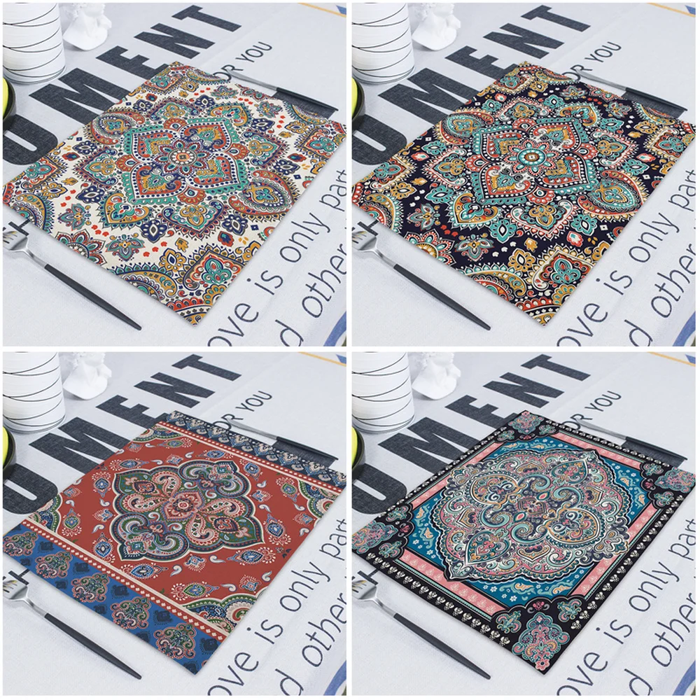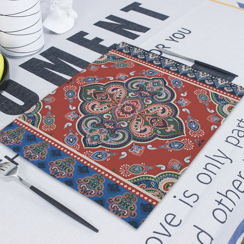Квадратные столовые приборы в стиле бохо, абстрактные геометрические декоративные прямоугольные столовые коврики для обедов, 42*32 см