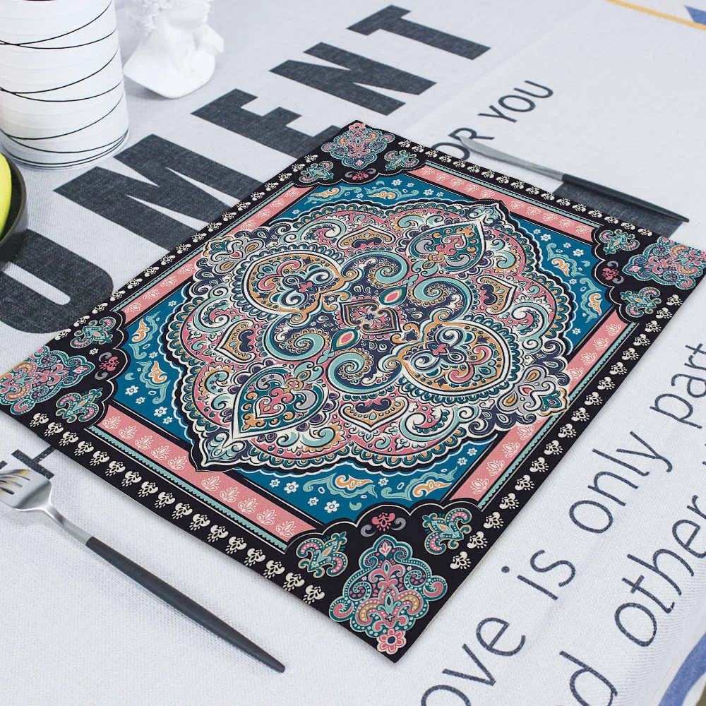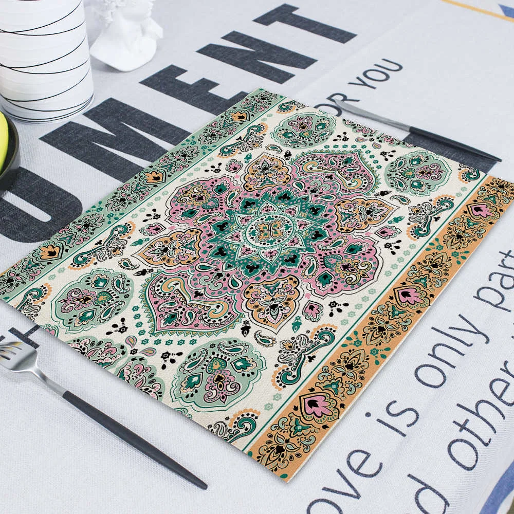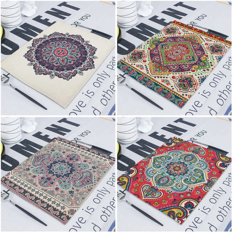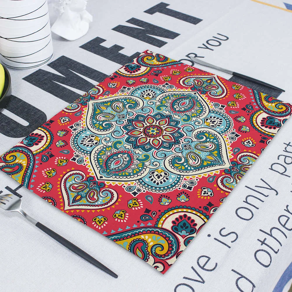 Квадратные столовые приборы в стиле бохо, абстрактные геометрические декоративные прямоугольные столовые коврики для обедов, 42*32 см