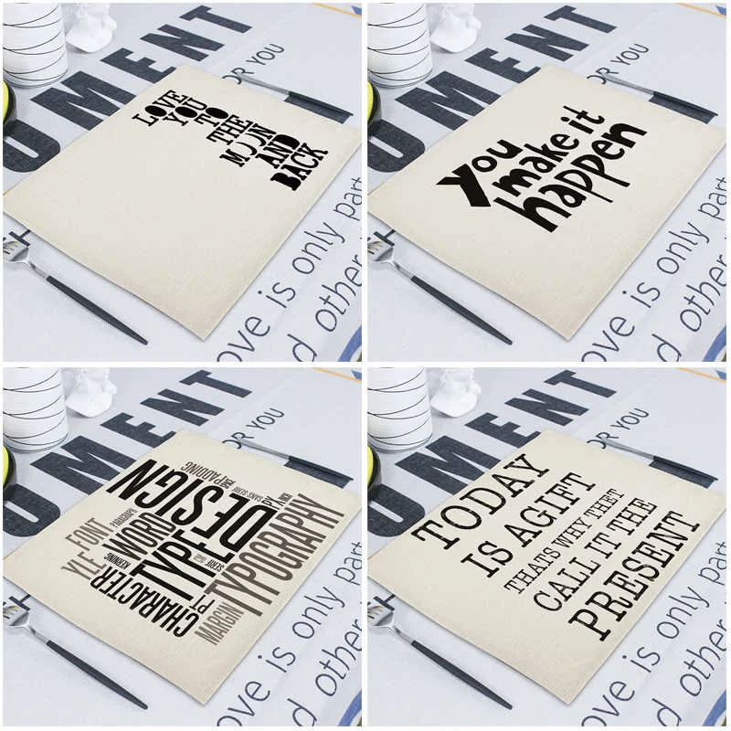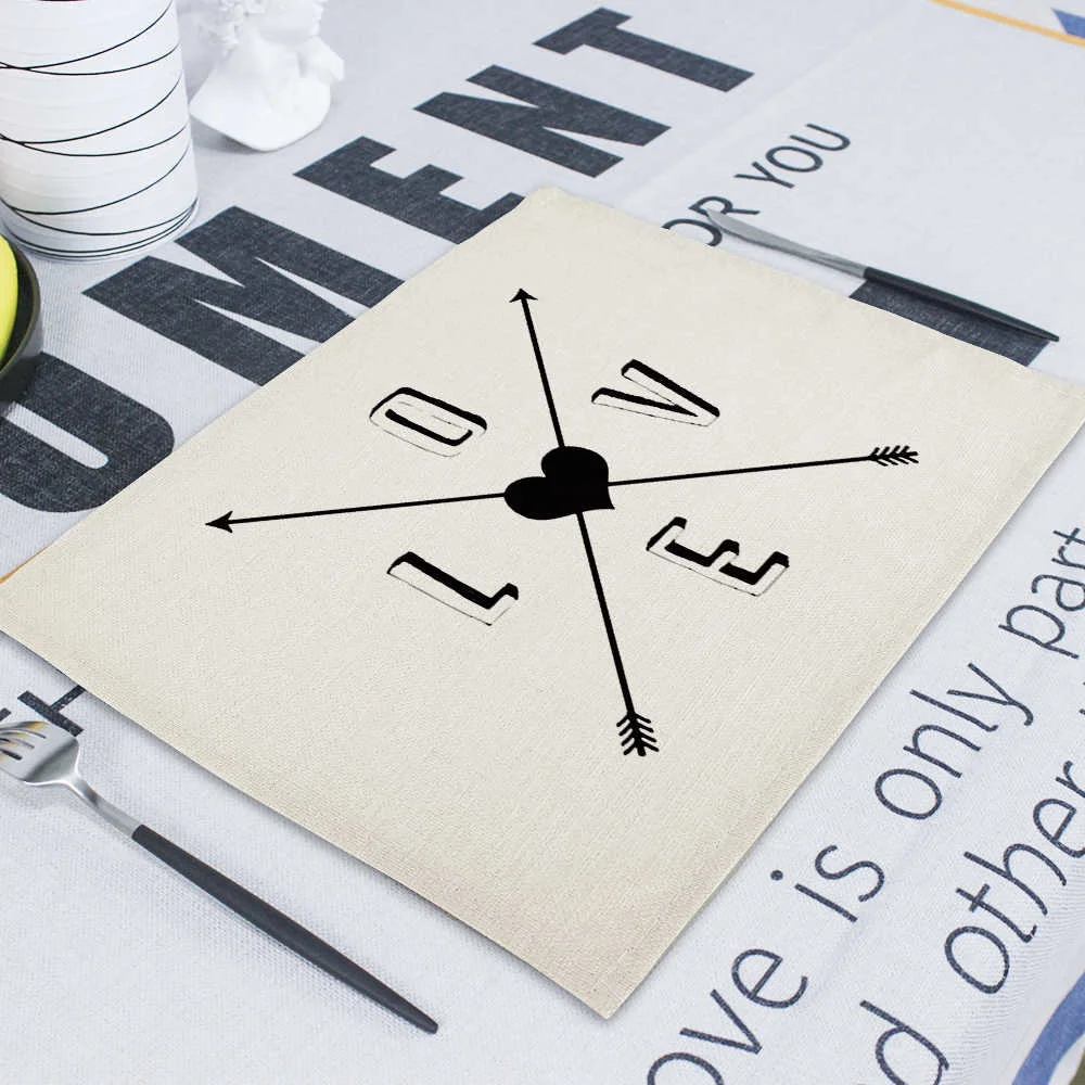 Коврик для обеденного стола с надписями в скандинавском стиле, простые льняные подставки для напитков, коврики для подставка в стиле Вестерн чашек, 42*32 см, домашний декор, коврик для чашки