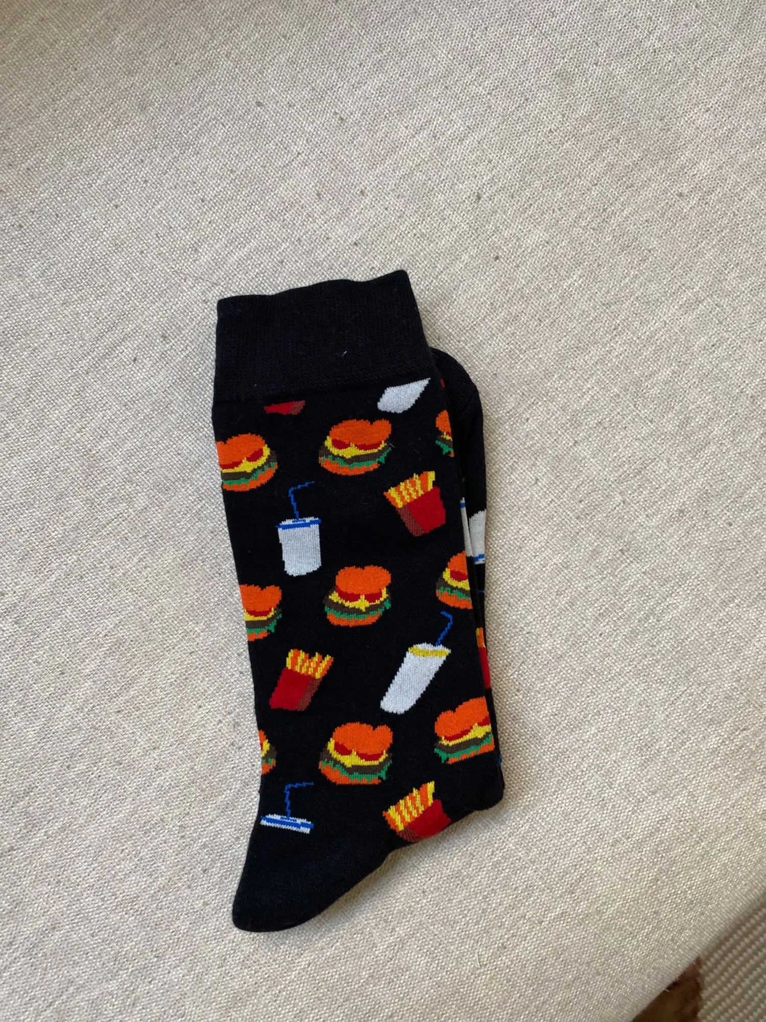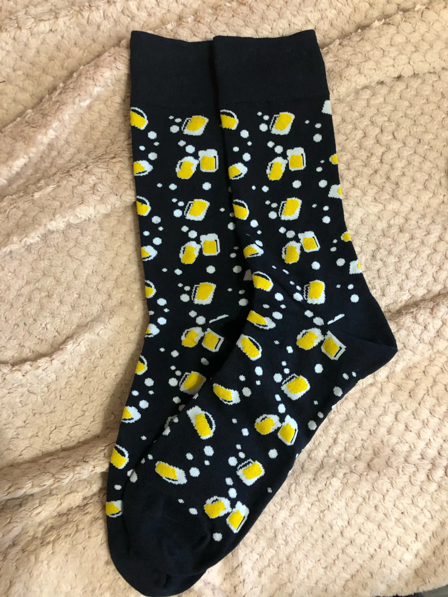 Носки мужские в британском стиле, смешные, в стиле хип-хоп, с изображением пива, картошки фри, подарок для зимы, счастливые мужские носки
