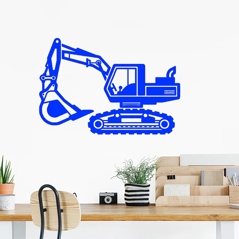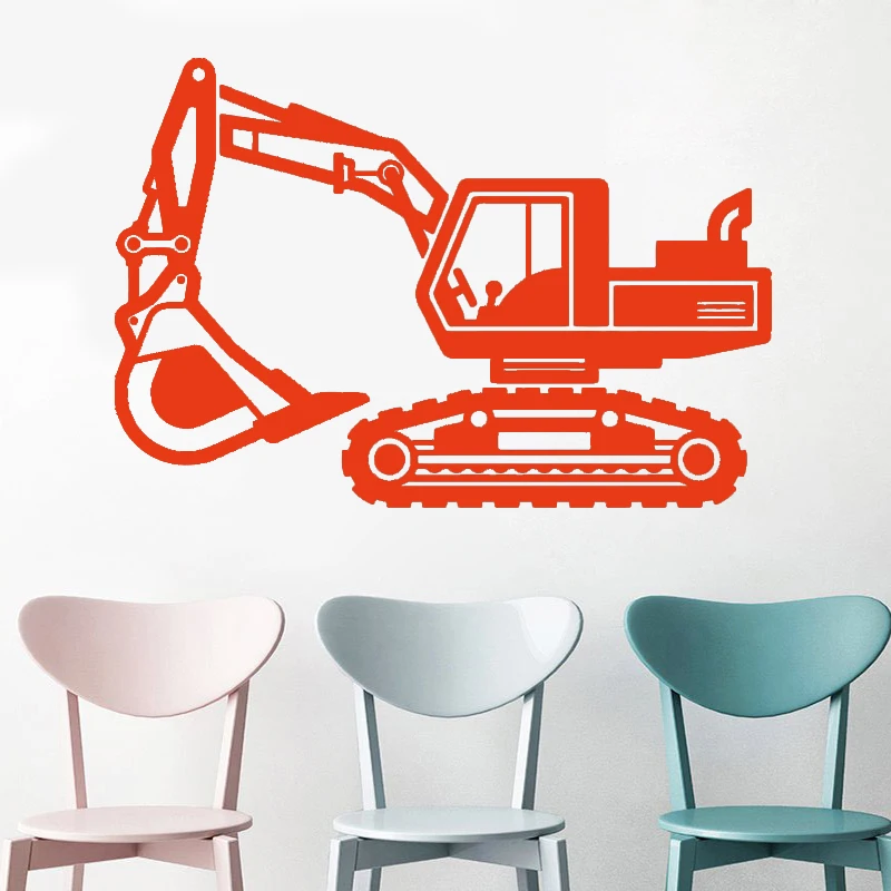 Экскаватор, настенные художественные наклейки, декор для комнаты мальчиков, экскаватор, Виниловая наклейка для строительства, Детская Настенная Наклейка для спальни, украшение для дома B256