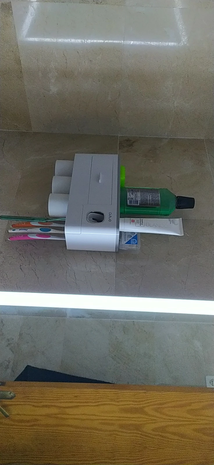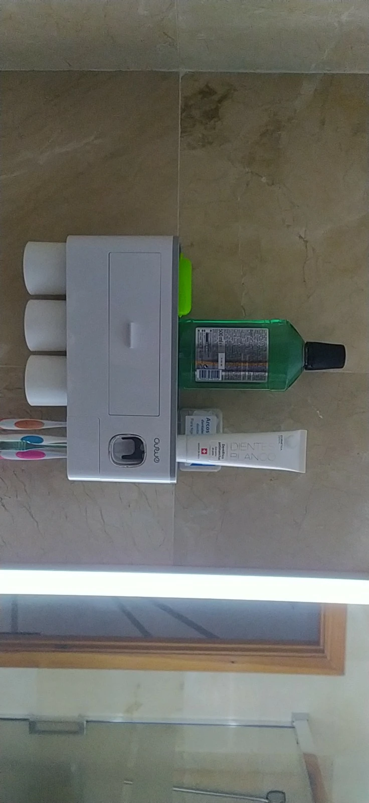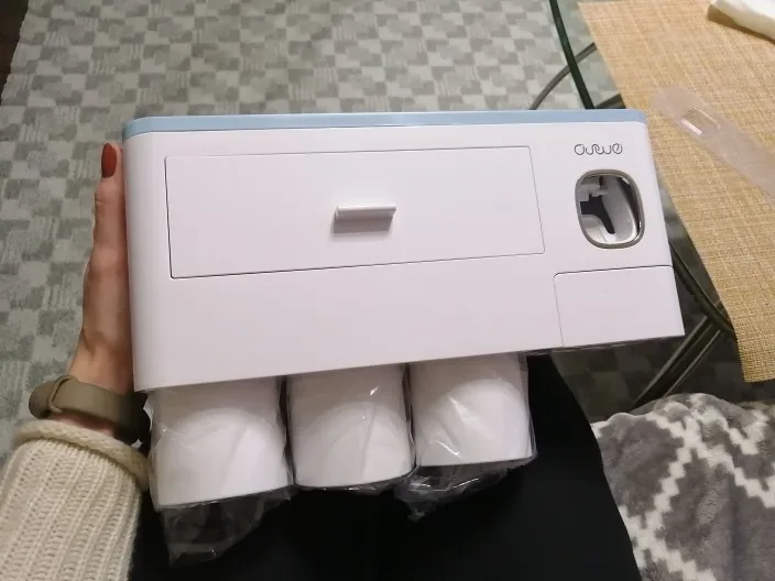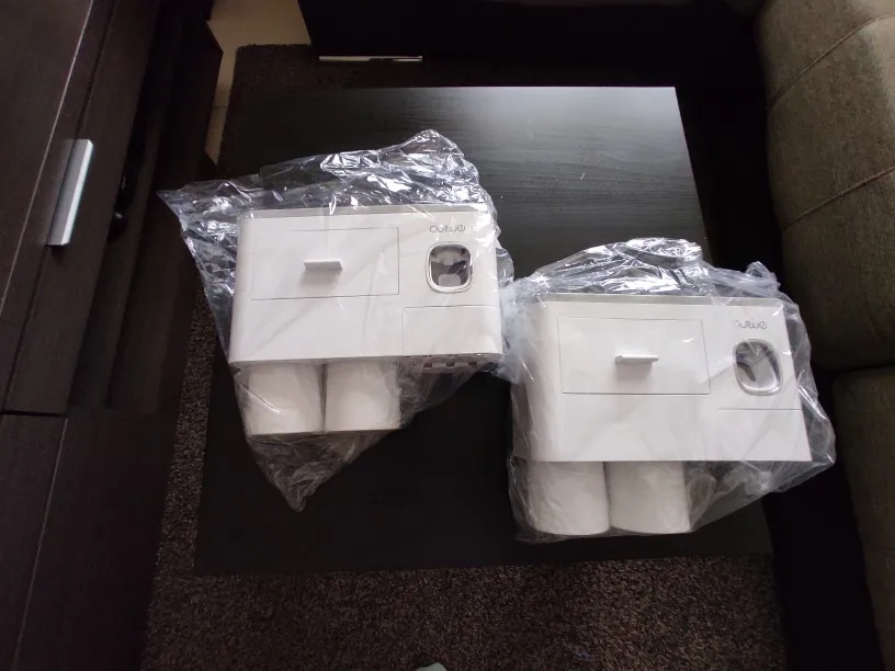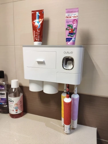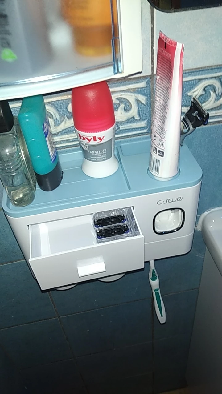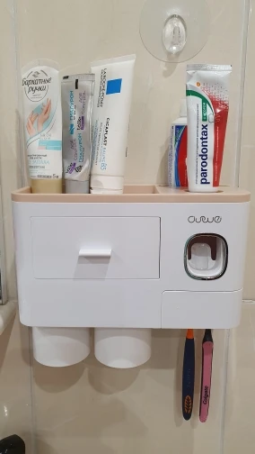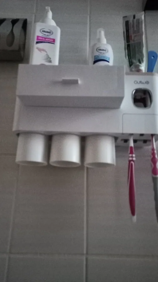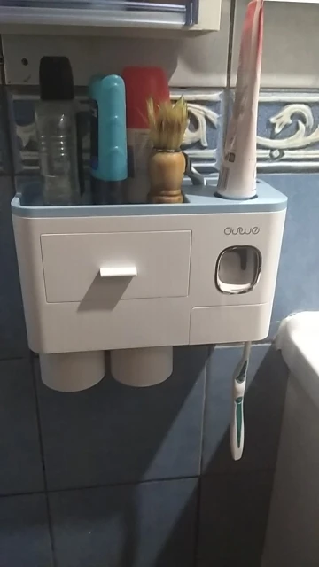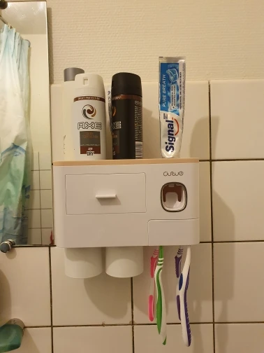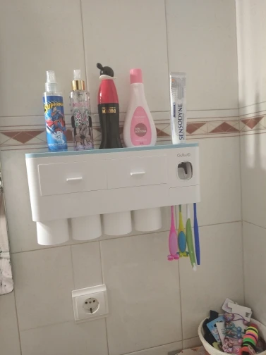Это здорово. Очень легко установить, сначала я думал, что стикер будет удален с стены при размещении прибора, из-за давления, но это не было. Он очень хорошо цепляется (я оставляет наклейку на стене в течение нескольких минут, на всякий случай, перед установкой). Очень компактный и компактный. Идея подвесить очки с магнитом очень хорошая. Зубная паста прессована и, для заливки пасты в щетку, хорошо дозирует ее. Он не выпадает слишком сильно, слишком быстро или протекает. Он пришел хорошо вовремя и очень хорошо обернут. Без повреждений. Я очень доволен и буду покупать больше у этого продавца.