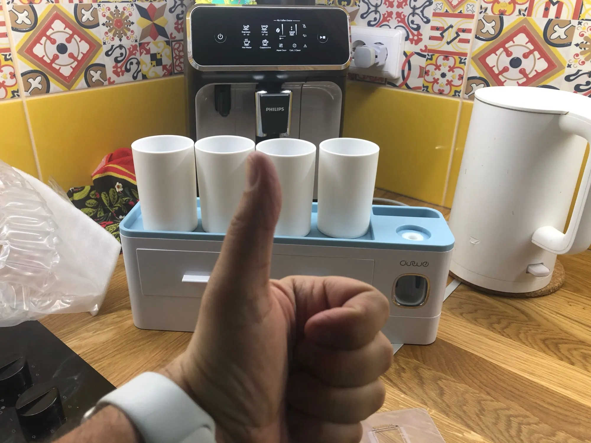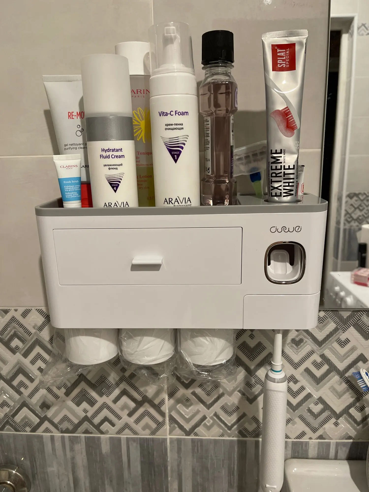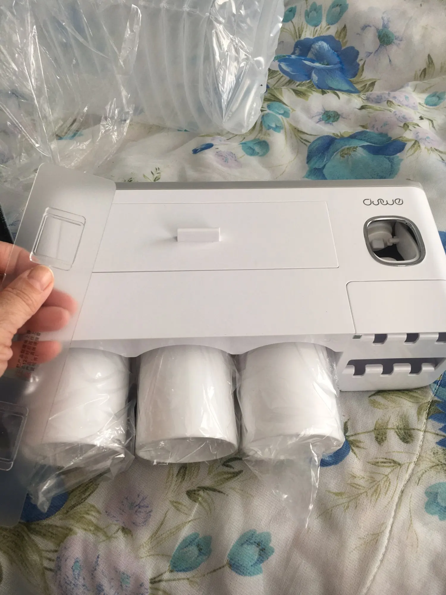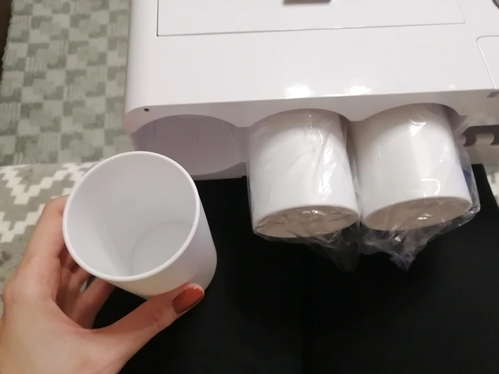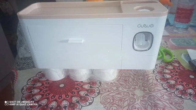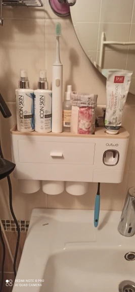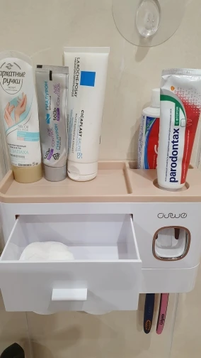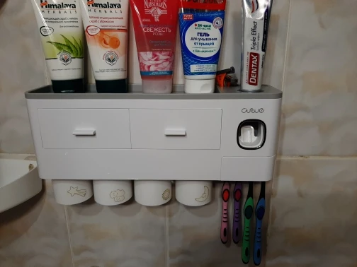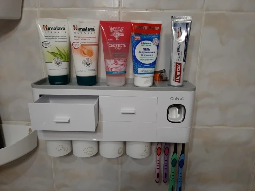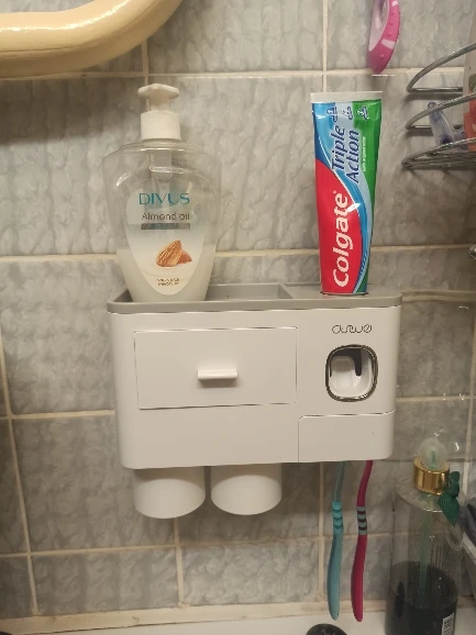 Вещь реально крутая. Габаритная, не как обычно пробники предметов с али. К дозатору конечно нужно приноровиться и будьте готовы его регулярно мыть если есть дети. Стаканчики держатся прекрасно. Скотч-кронштейн идеально клеится на пластик, просто сделал разметку с помощью уровня. Покупка своих денег стоит, вписывается в интерьер идеально и очень хорошо разгружает пространство.