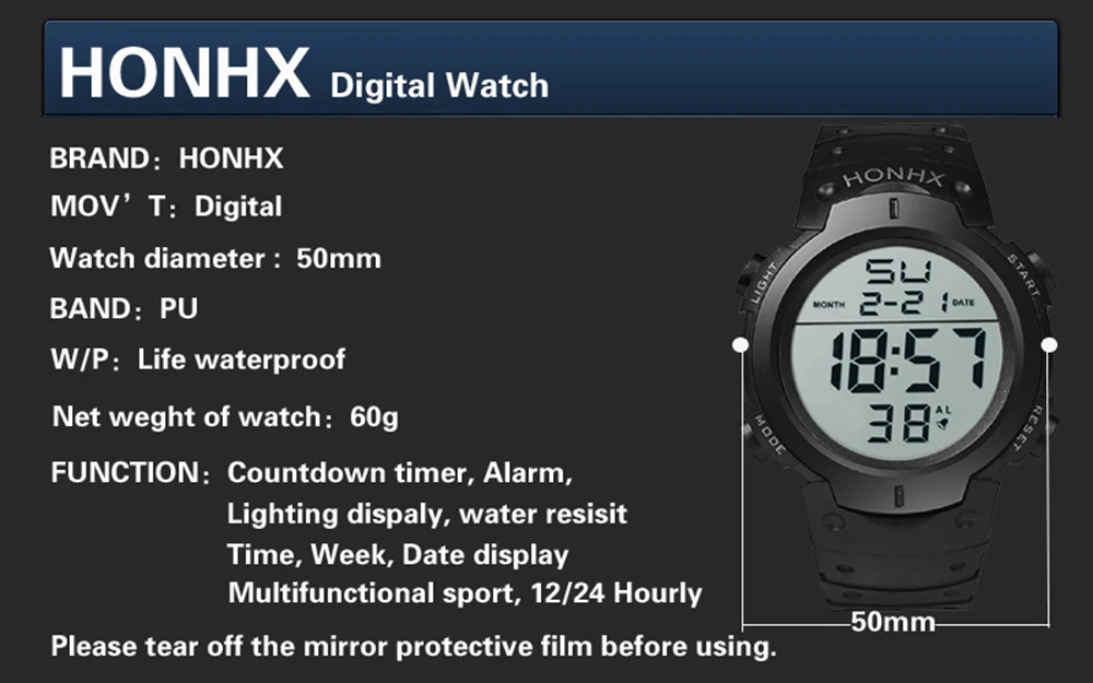 Часы наручные HONHX Мужские Цифровые, повседневные спортивные элект...
