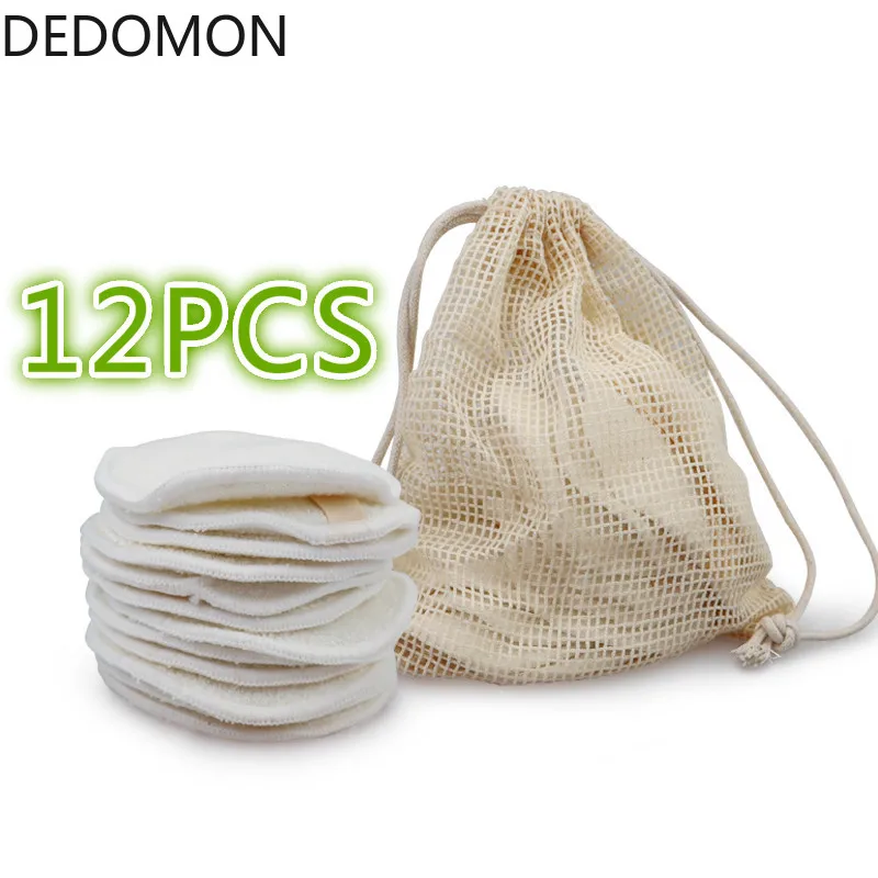 Многоразовые ватные диски для снятия макияжа, 12 шт., моющиеся круглые бамбуковые подушечки для макияжа, тканевые подушечки для ухода за кожей, инструмент для очистки кожи