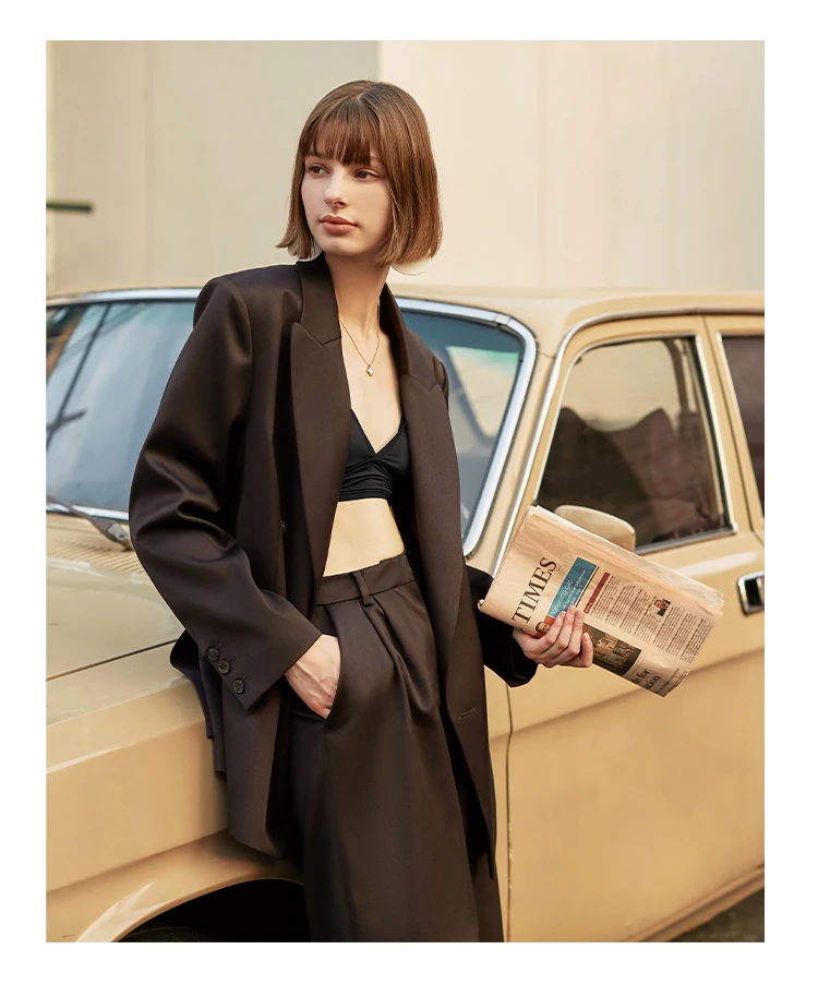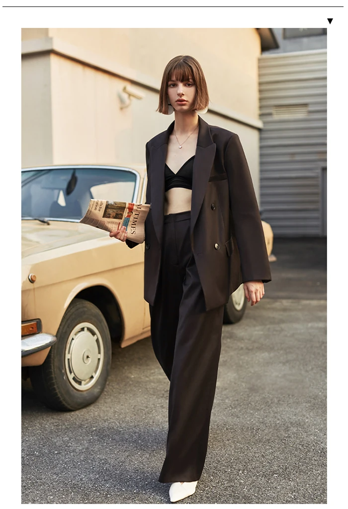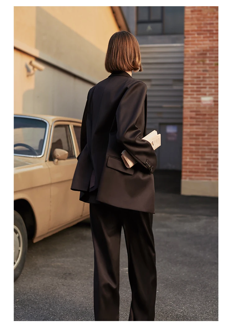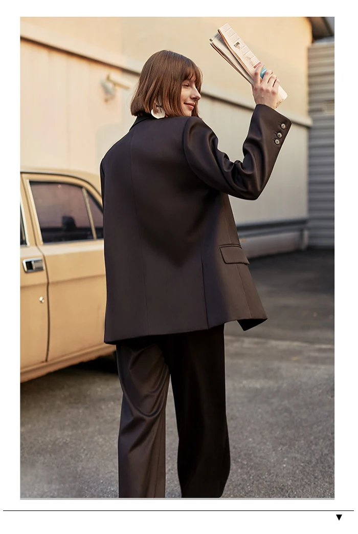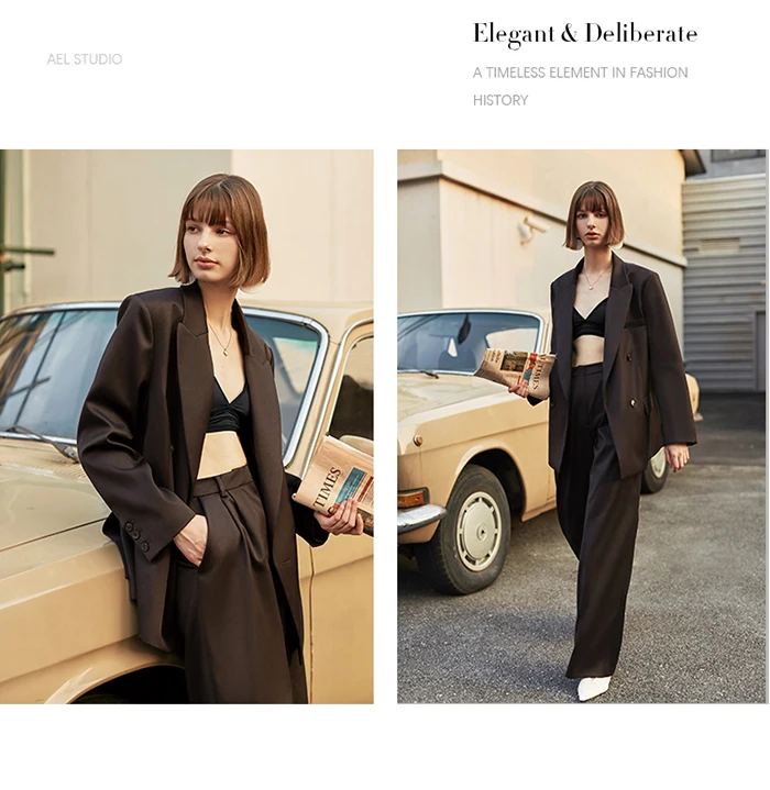 AE L осенне-зимний женский брючный костюм темно - коричневый свободный винтажный Куртка и широкие брюки 2019 офисные женские костюмы Блейзер наборы