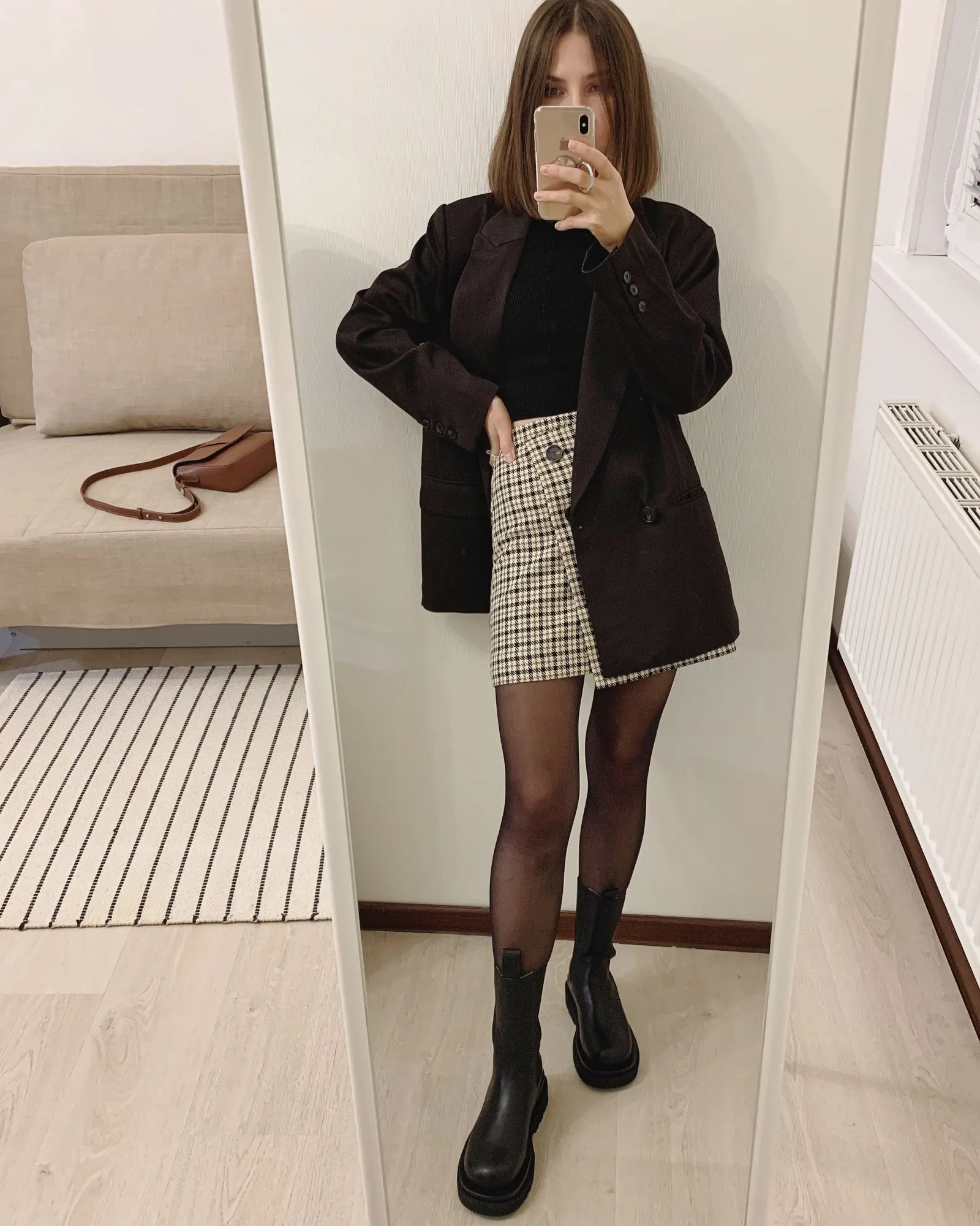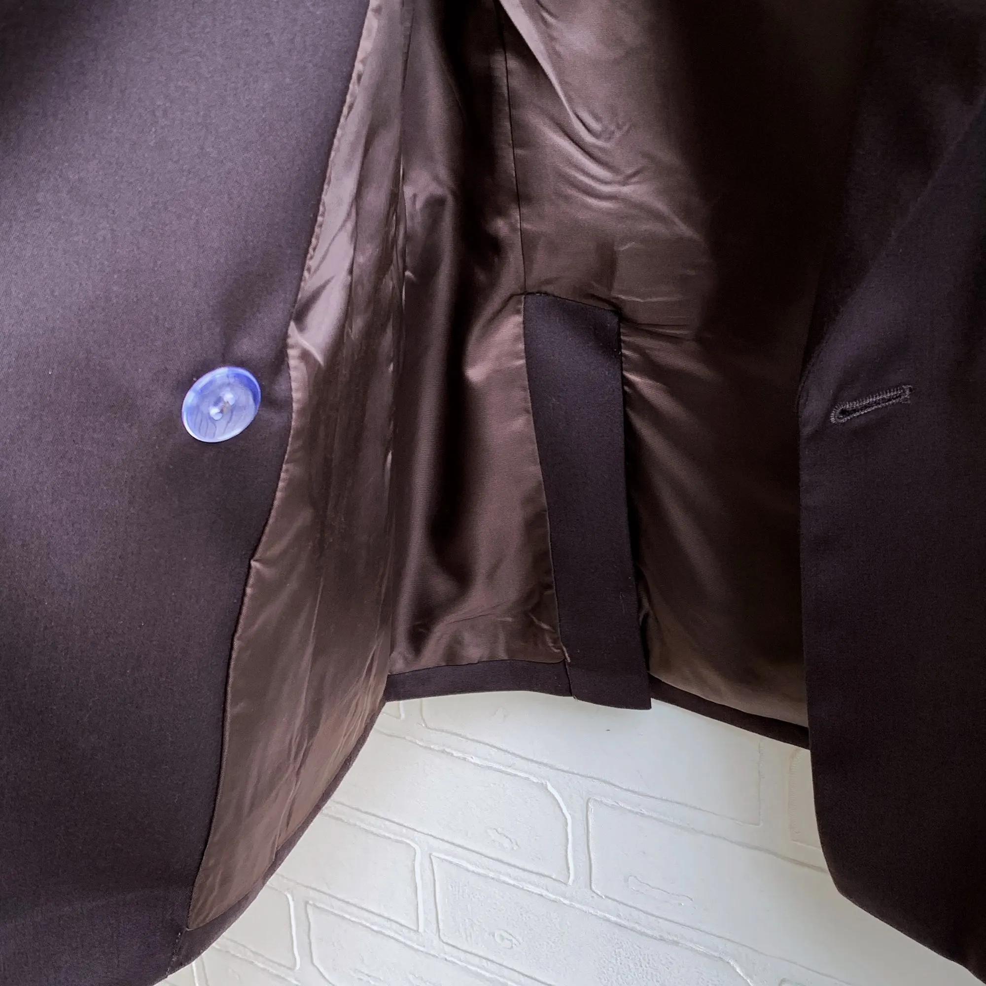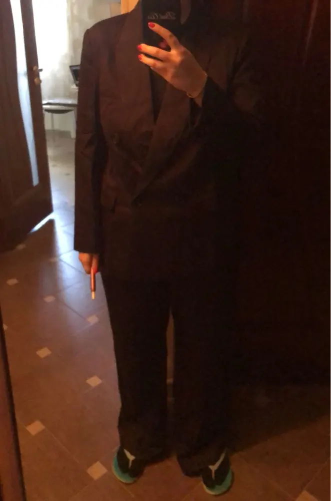 Костюм классный, модный! Заказала самый большой размер, очень опасаясь того, что не пройду в бедрах. В бедрах все окей, как ни станно, но в талии... все, собственно, видно на фото. Придется нести в ателье, чтобы устранять проблему в талии и укорачивать длину. Моя первая не такая удачная покупка на алике, но костюм все равно очень крутой: ткань, крой, тренд. Рекомендую к заказу в том случае, если вы точно по всем параментрам проходите по размеру. И костюм все-таки темно-коричневый, не черный, тоже учитывайте