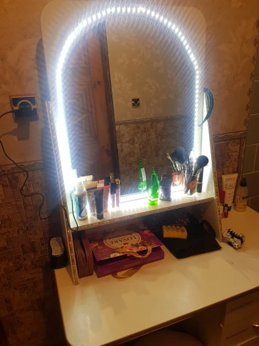 Suuuper хорошо, мне нравится, я разместил его вокруг своего зеркала, и это не хорошо для макияжа, потому что он загорается, но это супер круто для фотографий. Если вы хотите использовать его для макияжа, вы должны положить его в поисках вас, но когда они выключат, он выглядит уродливым, поэтому я не ставил их таким образом. Светодиоды эффектные, много освещают, я уверен, что куплю снова и другие цвета!