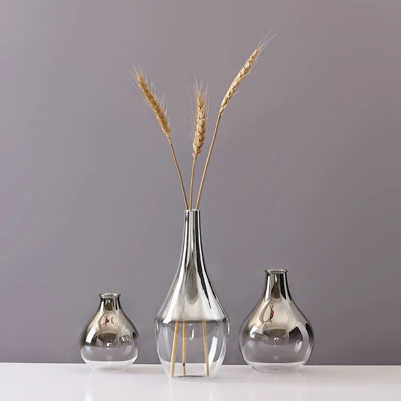 Стеклянная ваза в скандинавском стиле, серебряный градиент, сушеные...