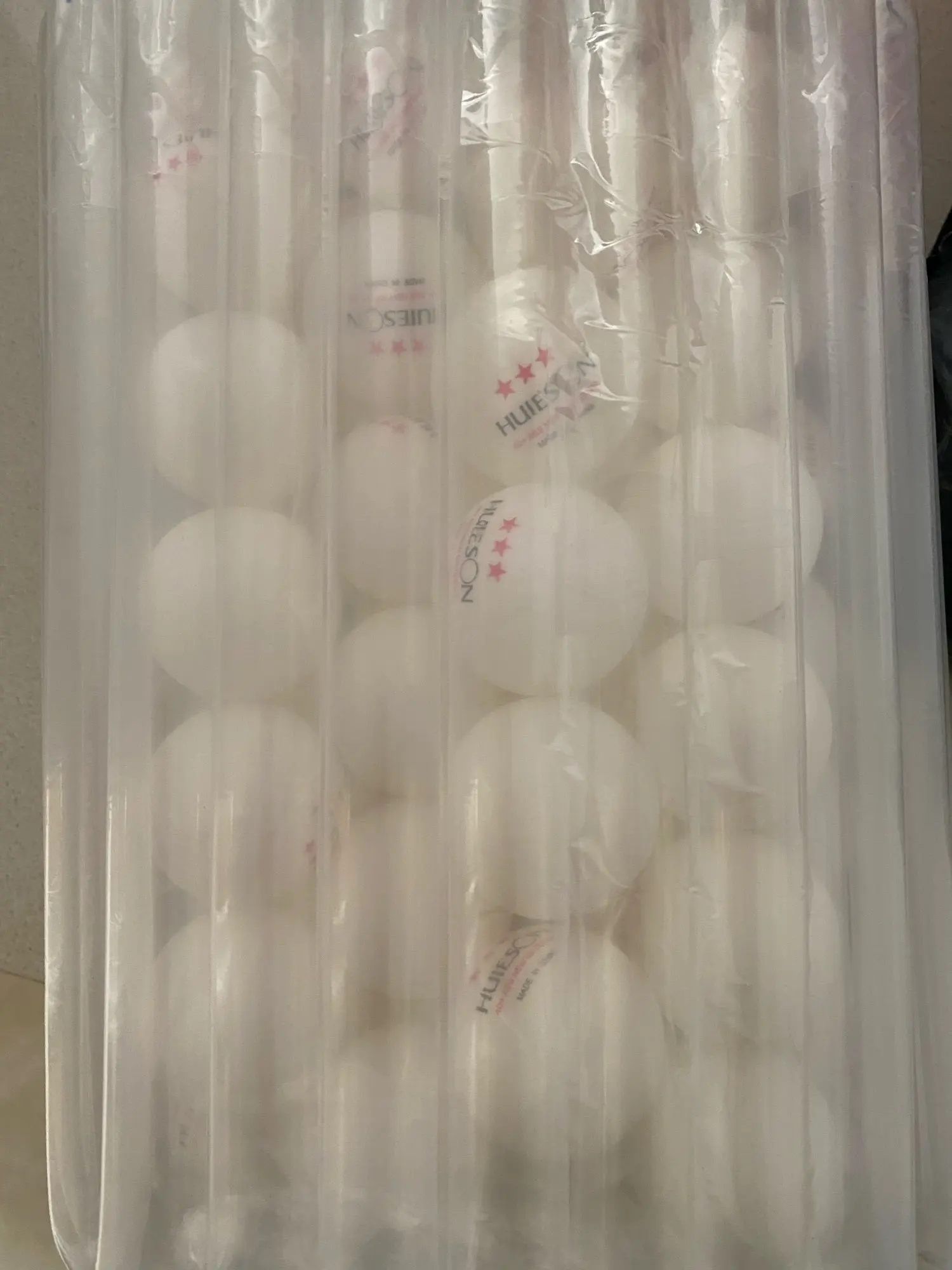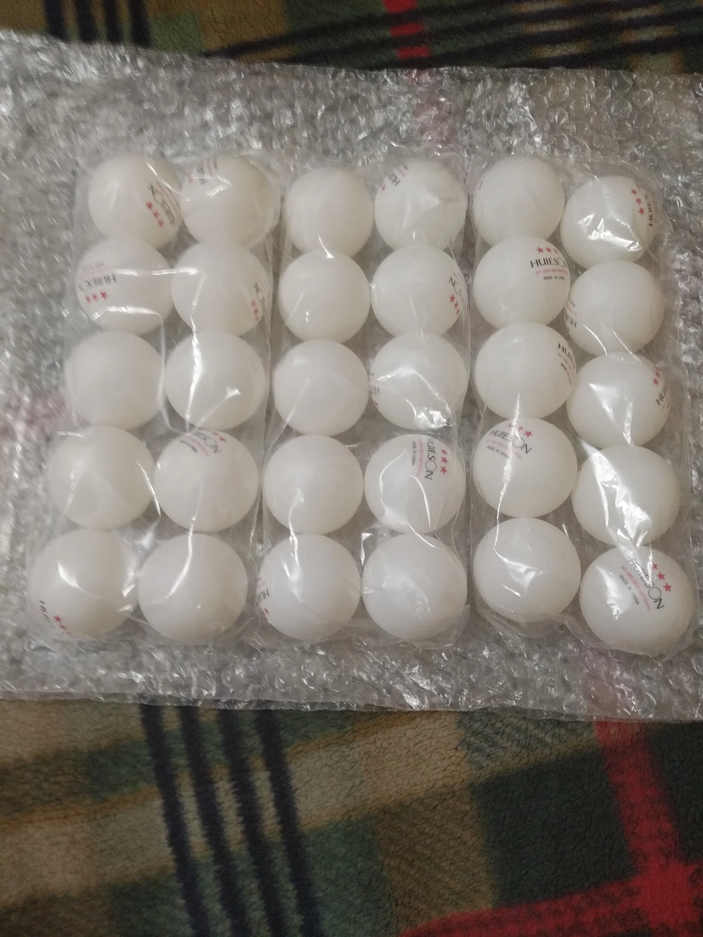 Прислали ровно 30 шаров, в обычной мягкой упаковке, я думал пару будет раздавлены или лопнут. Но ни один не был испорчен при доставке. Шарики на картинке кажутся больше чем в реальной жизни, но я давно не играл в настольный теннис.