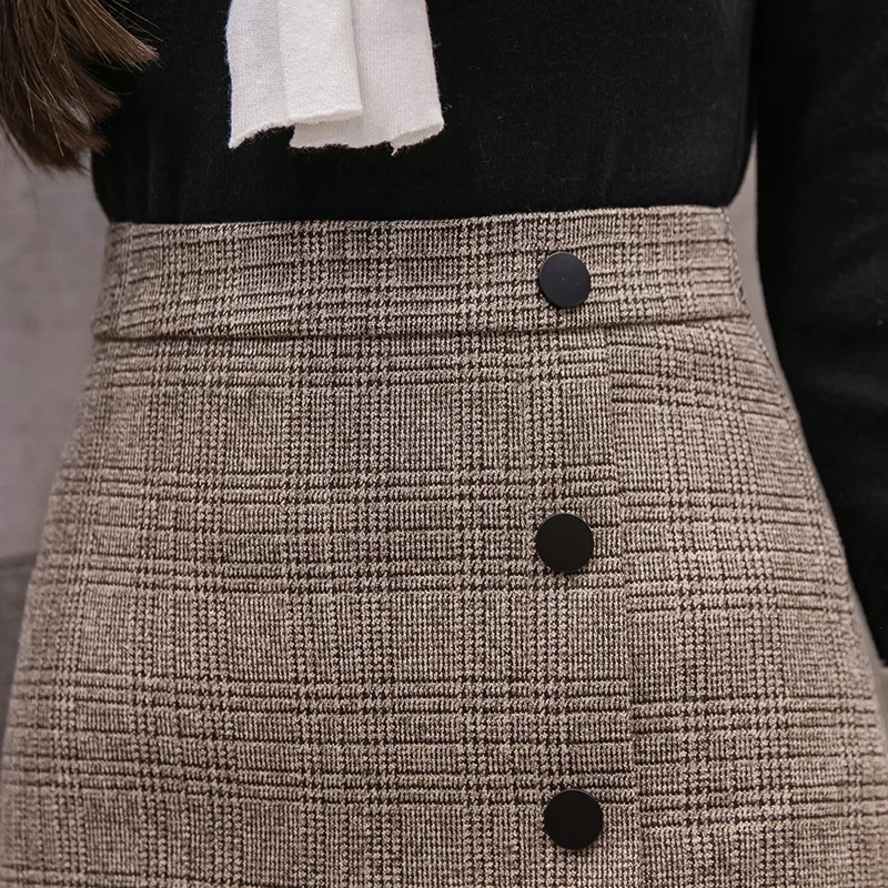 Юбка женская, твидовая, трапециевидная, с завышенной талией, на пуговицах, до колен, в клетку, 2021, 50, 7485