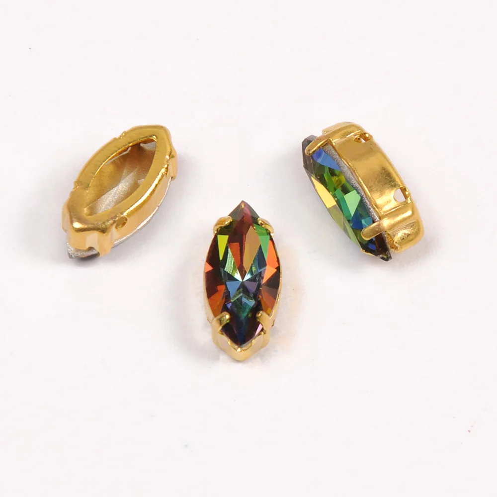 YANRUO Navette конский глаз закрепка медные камни основа Серебро Золото Шитье с кристаллами стразами Одежда DIY Металл