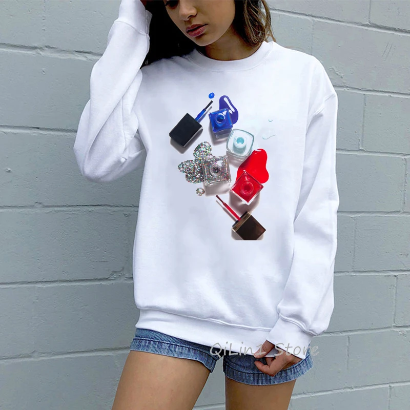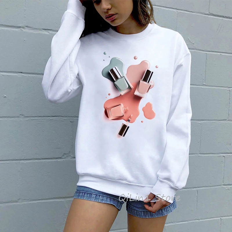 Спортивный костюм для женщин, с акварельным рисунком лака для ногтей, толстовка с 3D эффектом, белая толстовка, хипстерская уличная одежда
