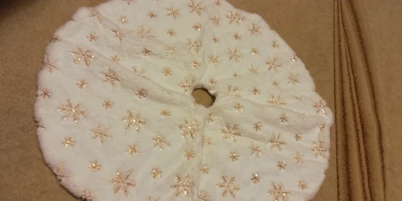 чудове покривало під ялинку. дуже задоволена покупкою. швидка відправка, прийшло мега швидко за 11 днів новою поштою!!! на дотик дуже м'якеньке, сніжинки зроблені з паєток і гарно блестять. виглядає набагато краще ніж на фото. рекомендую продавця і товар.