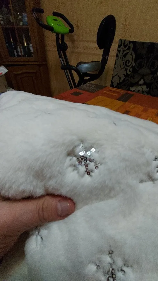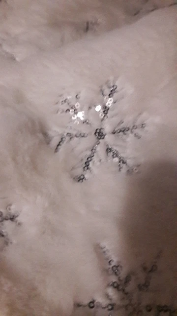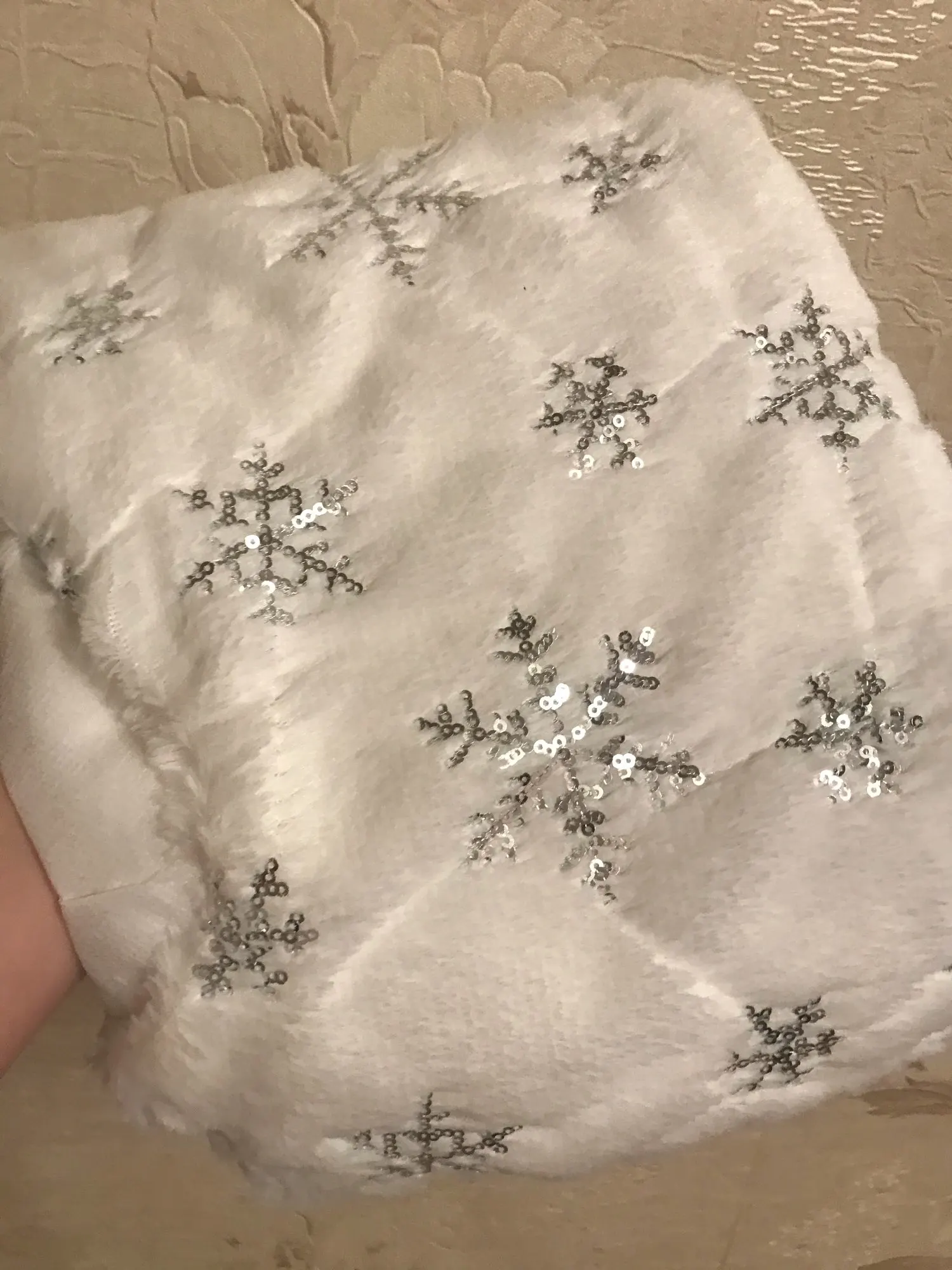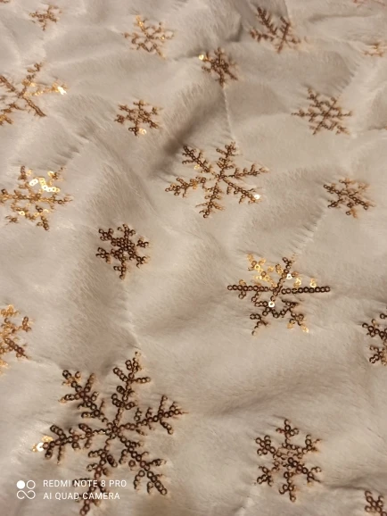 Идеально все, и качество и размер , все пайетки пришиты ровно, снежинки выразительные и блестят т ткань очень приятная , почти как плюшевая