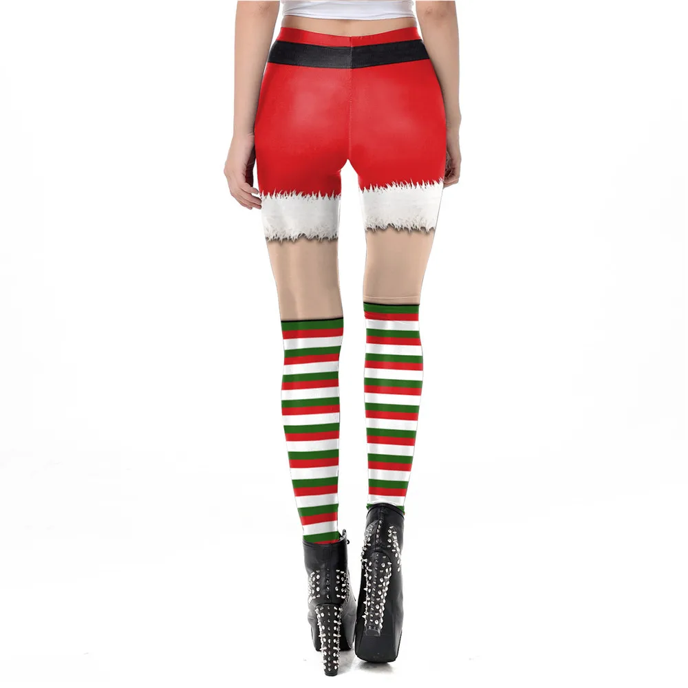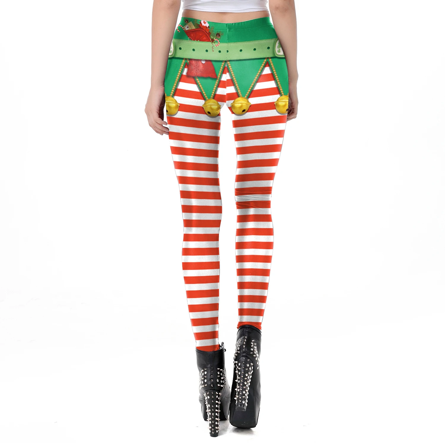 Рождественские леггинсы, женские зимние эластичные леггинсы в полоску с поясом-колокольчиком, новый год