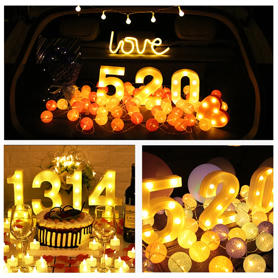 Светящийся светодиодный ночник с буквенным принтом, настенный светильник, креативный, 0-9 цифр, батарея, лампа, романтическое украшение для свадьбы, дня рождения, Рождества