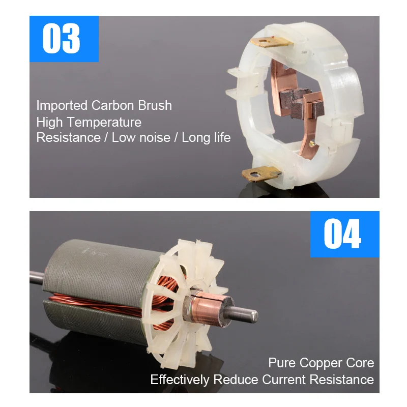 Особенности:-Передние и задние двойные шариковые подшипники.-Высокая мощность, низкий уровень шума.-Долгий срок службы.-Передняя часть может быть зафиксирована 2 винтами M4.-Высокоскоростной двигатель постоянного тока с высоким крутящим моментом, электрические сверлильные станки.