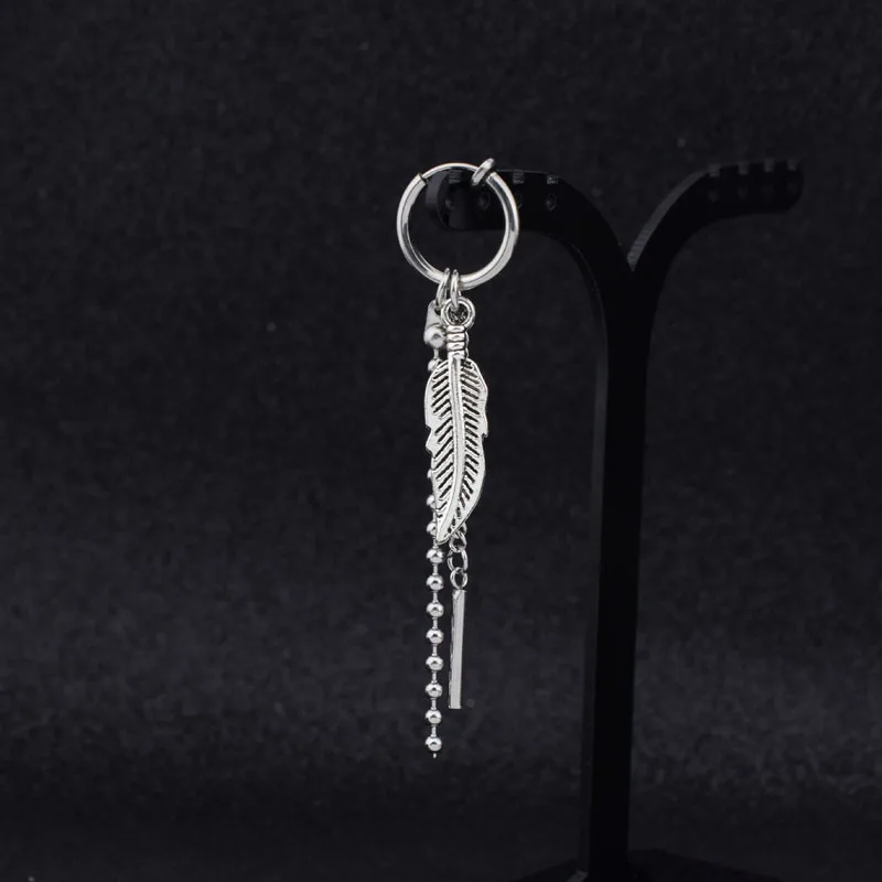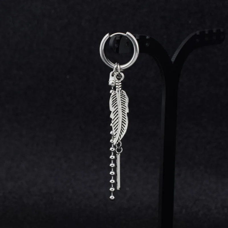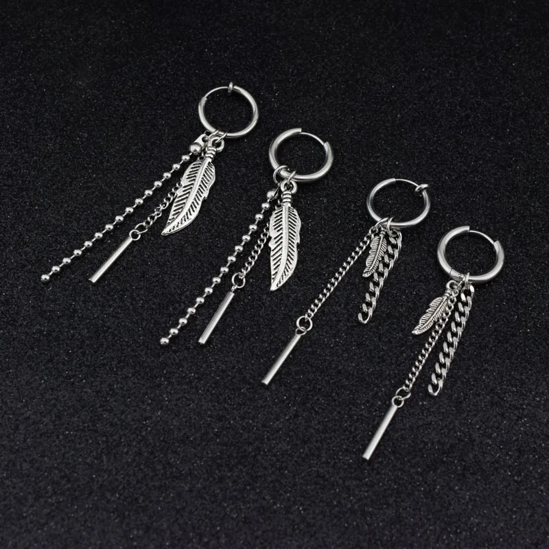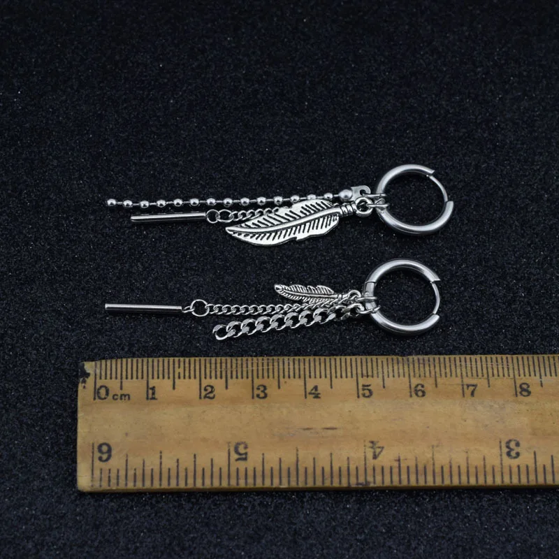 Серьги-гвоздики унисекс Idol KPOP, из нержавеющей стали, с перьями и длинными цепочками