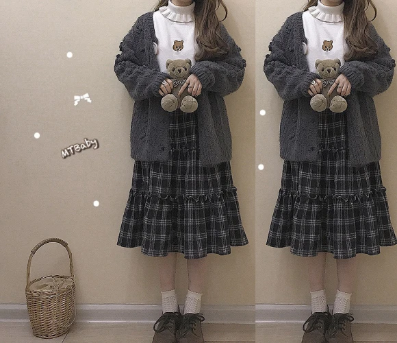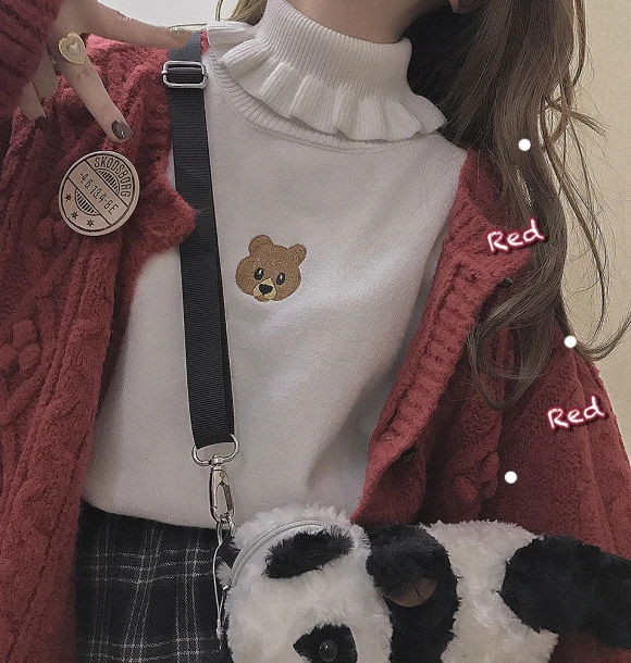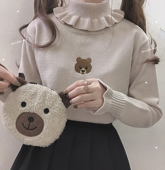 Милая трикотажная водолазка с вышивкой в виде японского маленького медведя, женские топы, мягкий милый осенний женский свитер в стиле мори для сестры