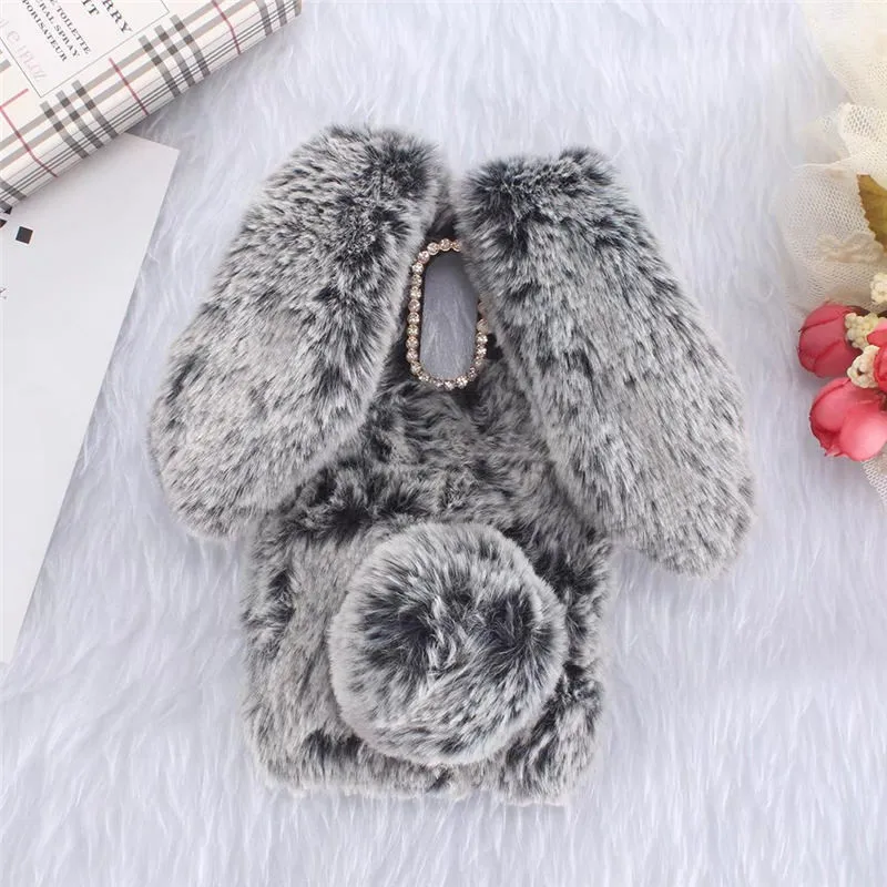 3D теплый меховой чехол с кроличьими ушами для LG K10 2017 Stylo 4 5 6 G4 Stylus Q60 K40 K41S K50 V50 K20 2019 чехол в виде кролика с бриллиантами